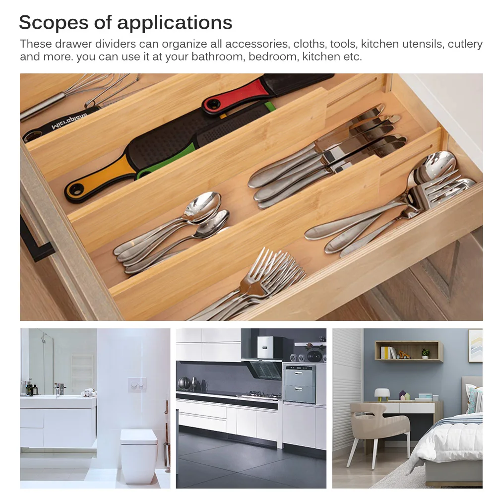 Эти разделители ящика могутОрганизуйте все аксессуары, салфетки, инструменты, кухонная утварь, столовые приборы и многое другое. Вы можете использовать его в своей ванной, спальне, кухне и т. д.