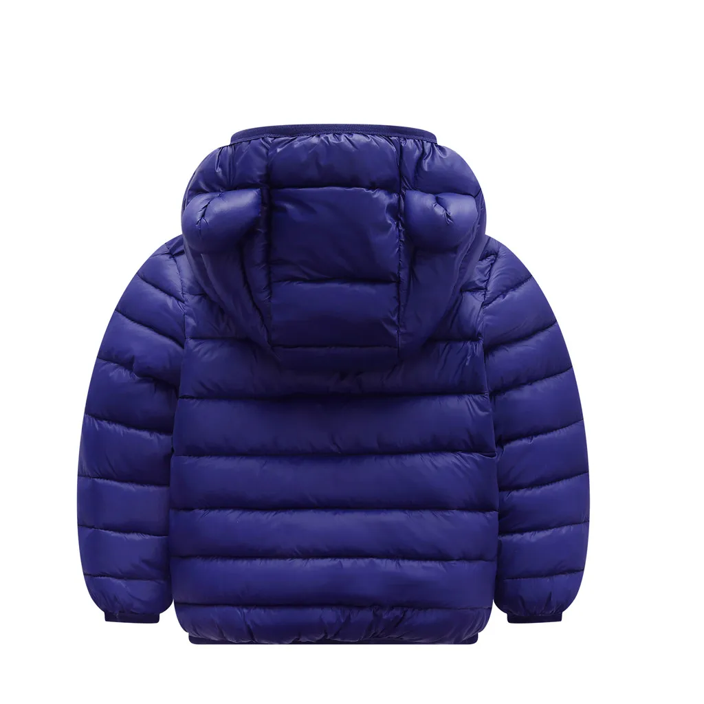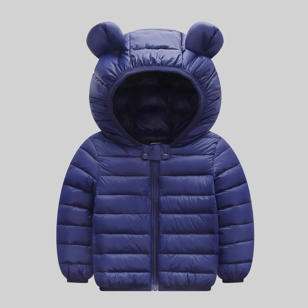 Детские зимние пальто для мальчиков и девочек, куртка, детская утепленная верхняя одежда с капюшоном на молнии с ушками