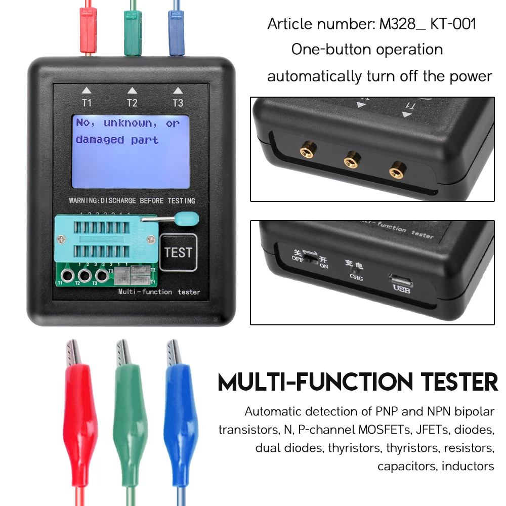 Измеряемые компоненты: различные диоды, конденсаторы, резисторы, триоды, Тиристоры, трубки MOS и т. Д.!