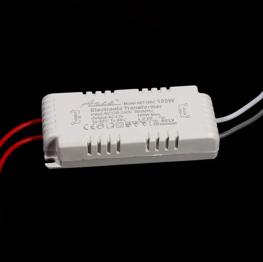 Этот электронный трансформатор, изменение от сети переменного тока 220V-240V переменного тока 12V, он может защитить низкого напряжения Светильник лампы или лампы. Он очень прочный в использовании и прост в установке, красные линии являются линией ввода, белые и серые линии являются линией вывода. И эти трансформаторы подходят для всех низковольтных G4/G5.3 12V кварцевый m (галогенный) светильник, лампы, или подходит для MR11/MR16 кварца (галогенный) лампа Cup 'соответствующий светильник ing.