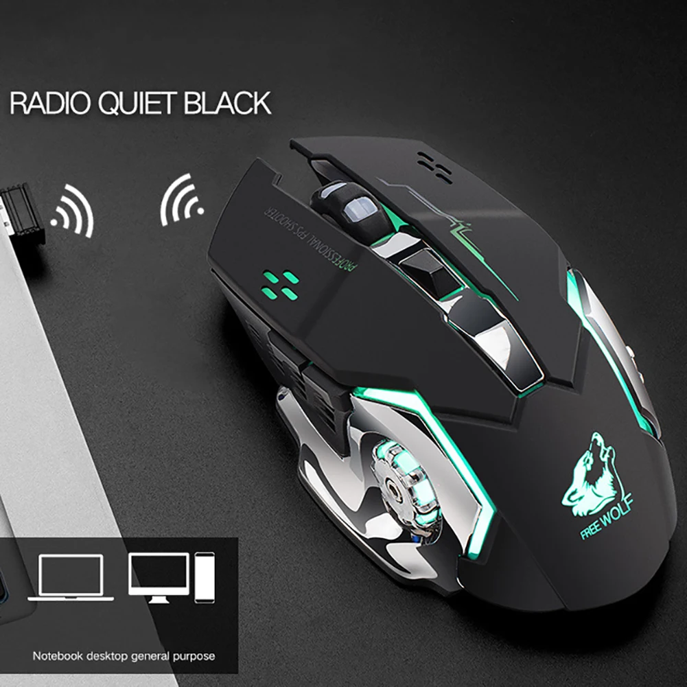Волк X8 бесшумный 2,4 ГГц 2400 Точек на дюйм 6 кнопок Беспроводной оптический Мышь USB приемник