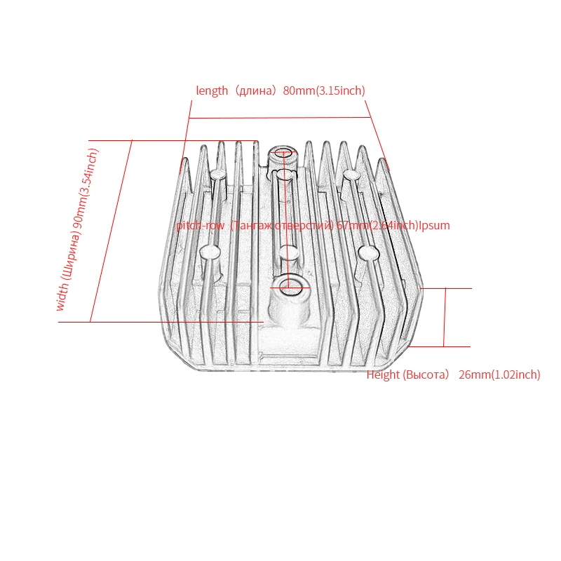 -Выпрямитель для мотоцикла -Входное напряжение: 12 В постоянного тока -Цвет: как на фото -Размеры: 80*90*26 мм (3,15*3,54*1,02/дюйм) -Шаг: 67 мм (2,64 дюйма) Предотвращает перезарядку аккумулятора и повышает Возможность зарядки С ребрами радиатора для лучшего охлаждения Запчасти и аксессуары мотоцикла Регулятор напряжения выпрямителя Сверхпрочная металлическая конструкция Помогает рассеивать излишки напряжения, предохраняет от перезарядки аккумулятора Эффективно улучшает возможности зарядки Большой теплоотвод, ребра, дизайн для максимальной теплоизоляции