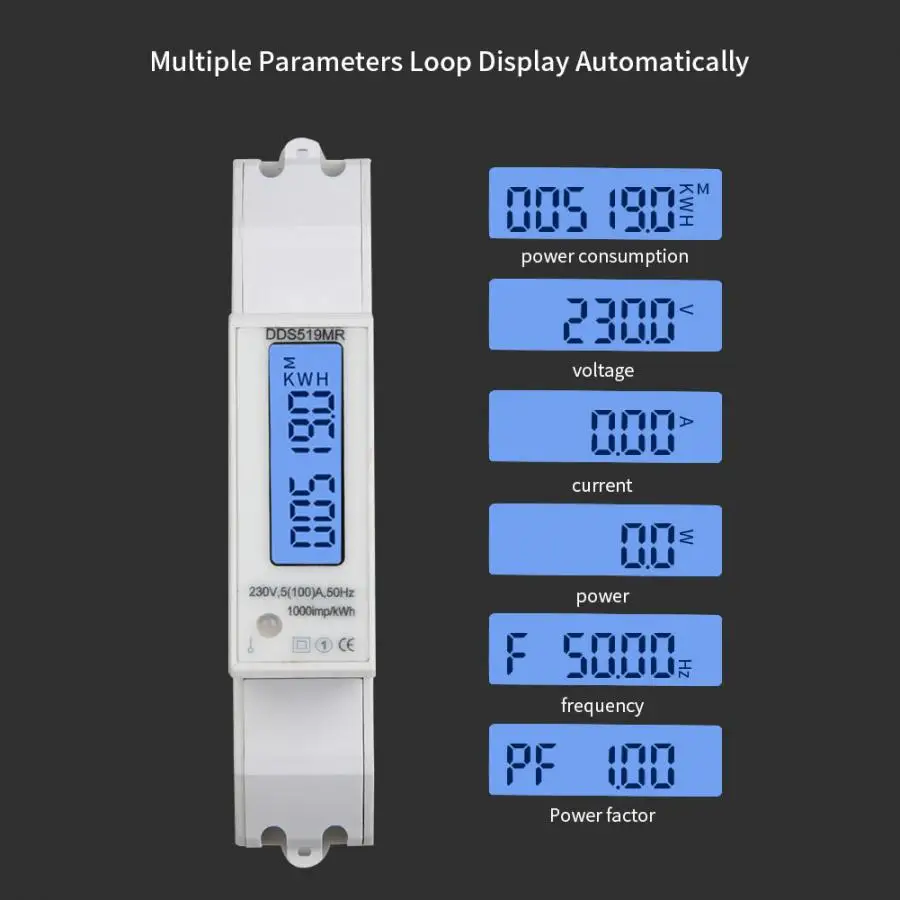 DDS519MR Многофункциональный однофазный счетчик энергии 230 V AC 1 P измеритель мощности 35 мм din-рейка