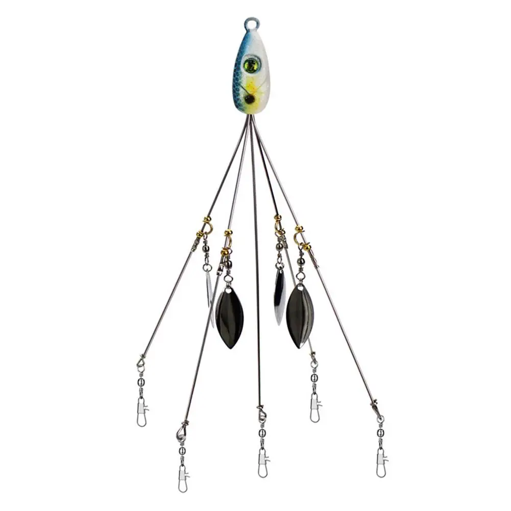 3. У зонтичных rigs есть 5 проводов с защелкивающимися Вертлюгами, которые могут прикрепить 5 приманок к платформе и рыбе на одном забрасывании.