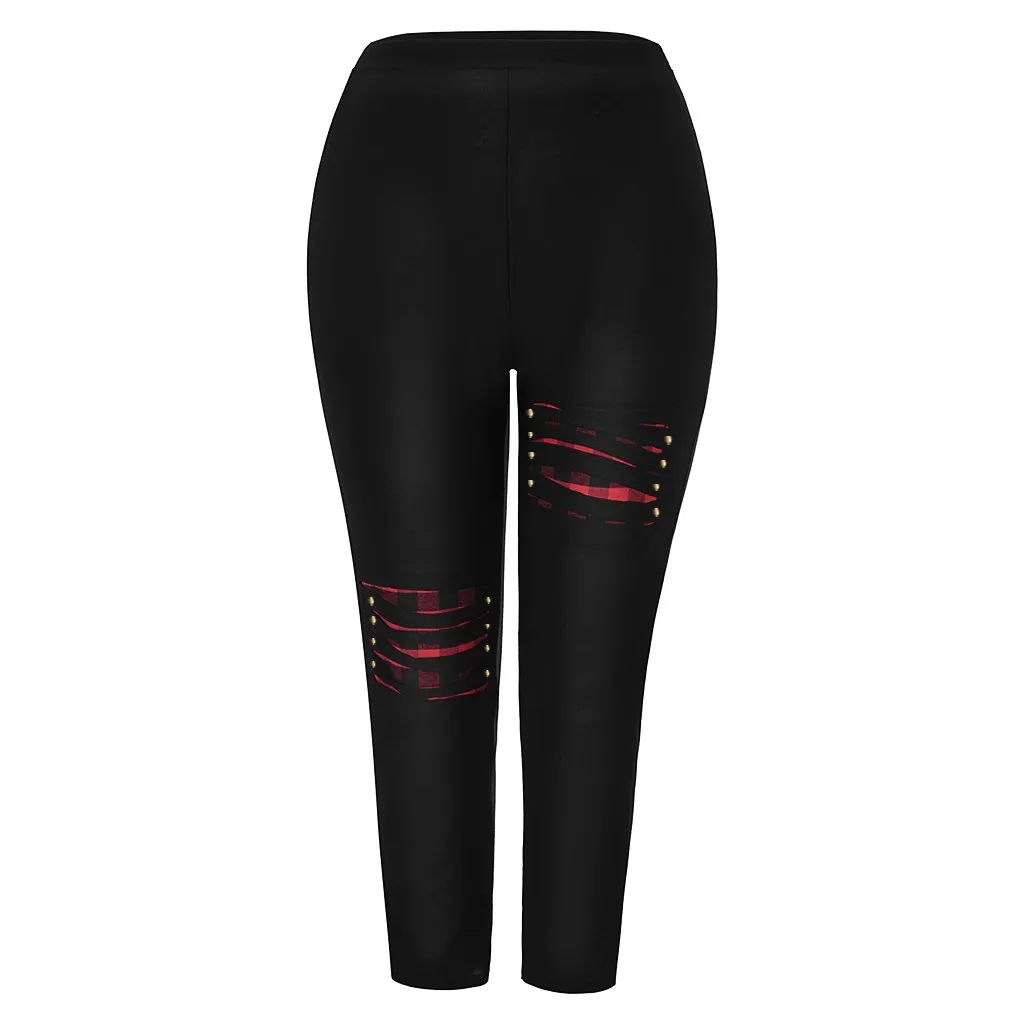 Особенности: большие размеры, эластичная резинка на талии, рваная клетчатая панель, с соединением, эластичная резинка на талии,Длинные штаны,Подходит для всех сезоновБрюки, повседневные брюки.
