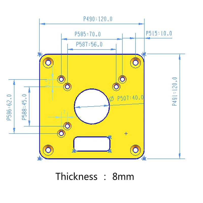 Размер: 120 мм x 120 мм x 8 мм/4,8''X 4,8 ''x 0,3'' Шаг винтовых отверстий: 56*45 мм * 54,3 мм/70*60 ммРасстояние между отверстиями:56*45 мм * 54,3 мм/70*60 мм