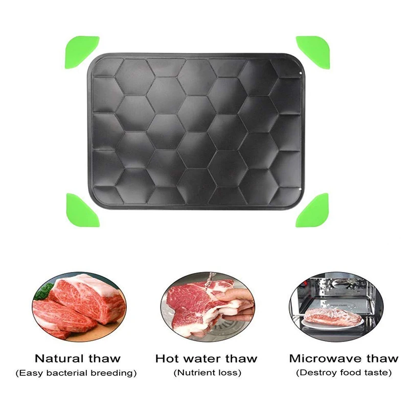 3. Абсолютно никаких химических веществ или электричества не используется. В отличие от микроволновых печей, которые частично готовят еду во время процесса размораживания, лоток безопасно и быстро размораживает мясо