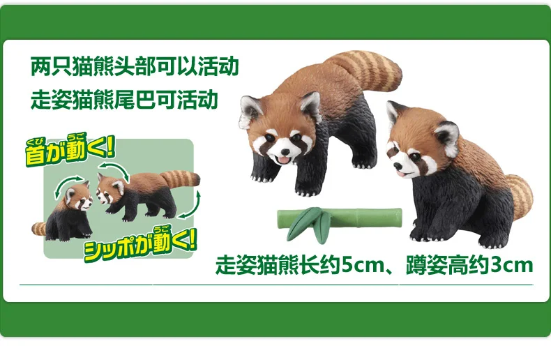 • Ania-это животное рисунок серии с 1 трюк, что позволяет вам испытать очарование и разнообразие зверюшек в веселом и привычным способом. -Подвижные трюки, которые можно играть с движением, реалистичной росписью и деталями, легко играть размер ладони, низкая цена за единицу, которую легко собрать и т. Д. Являются привлекательными. ・ Набор из 2 красных панд. ・ У одного есть подвижная горловина, а у другого-подвижная горловина и хвост. ・ С небольшими бамбуковыми деталями