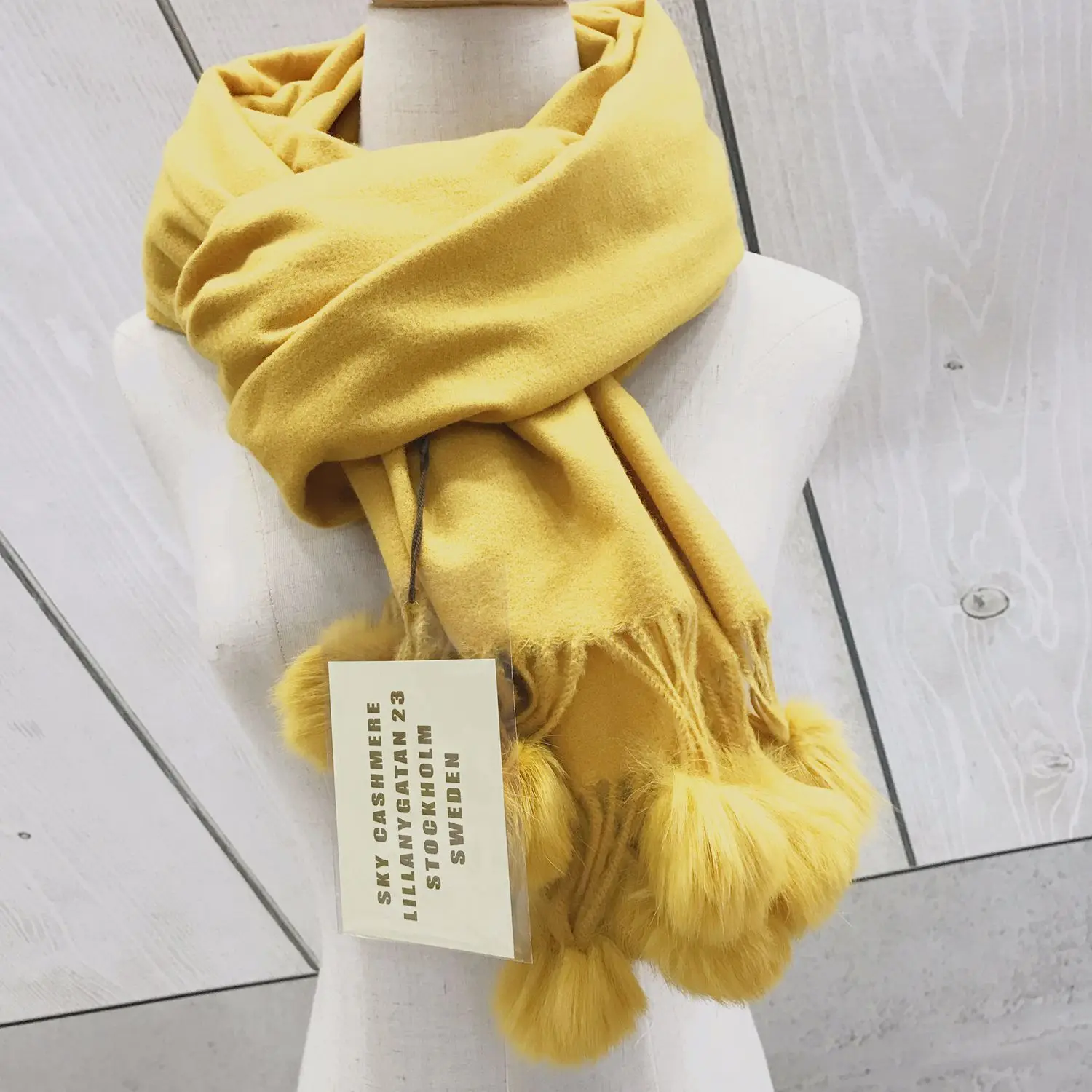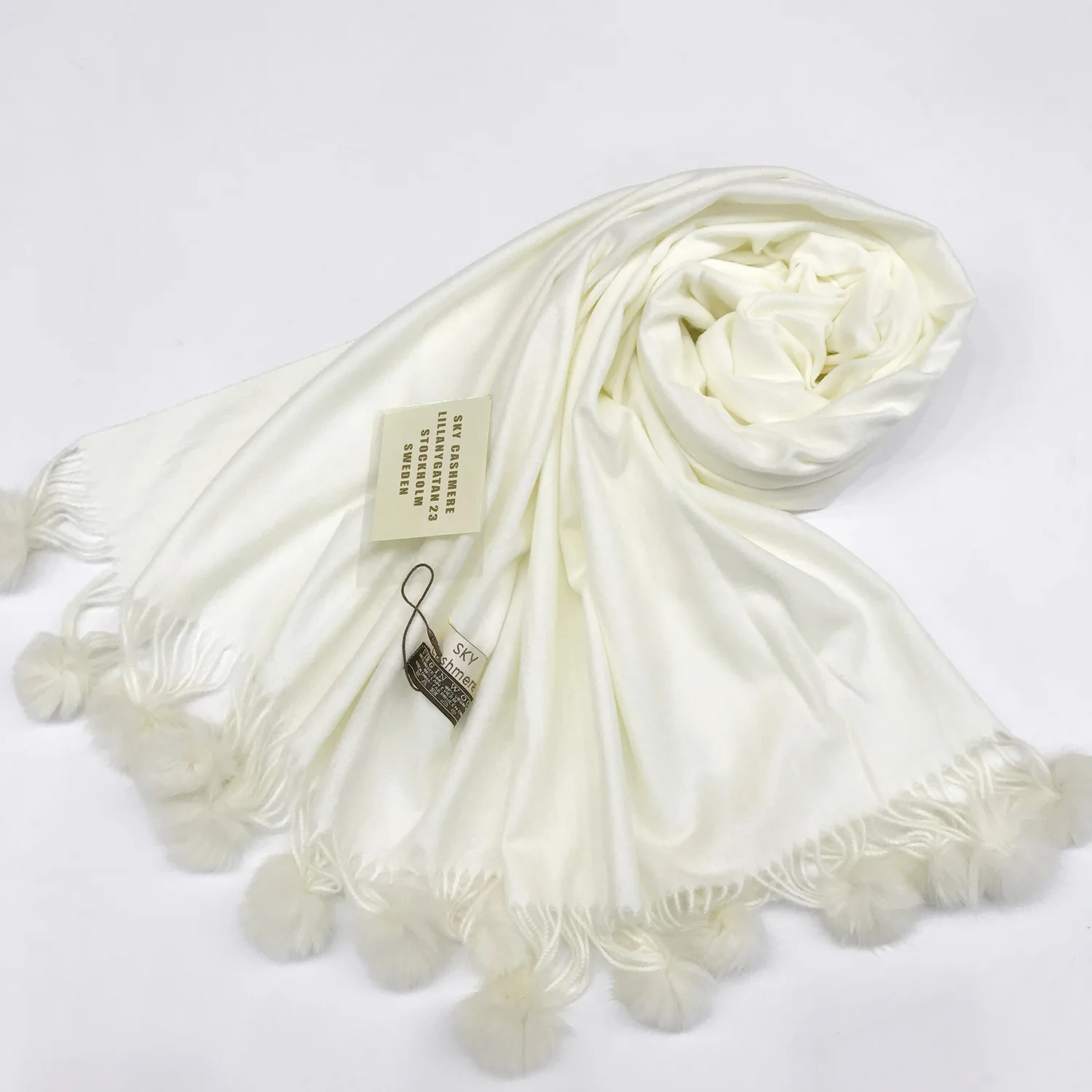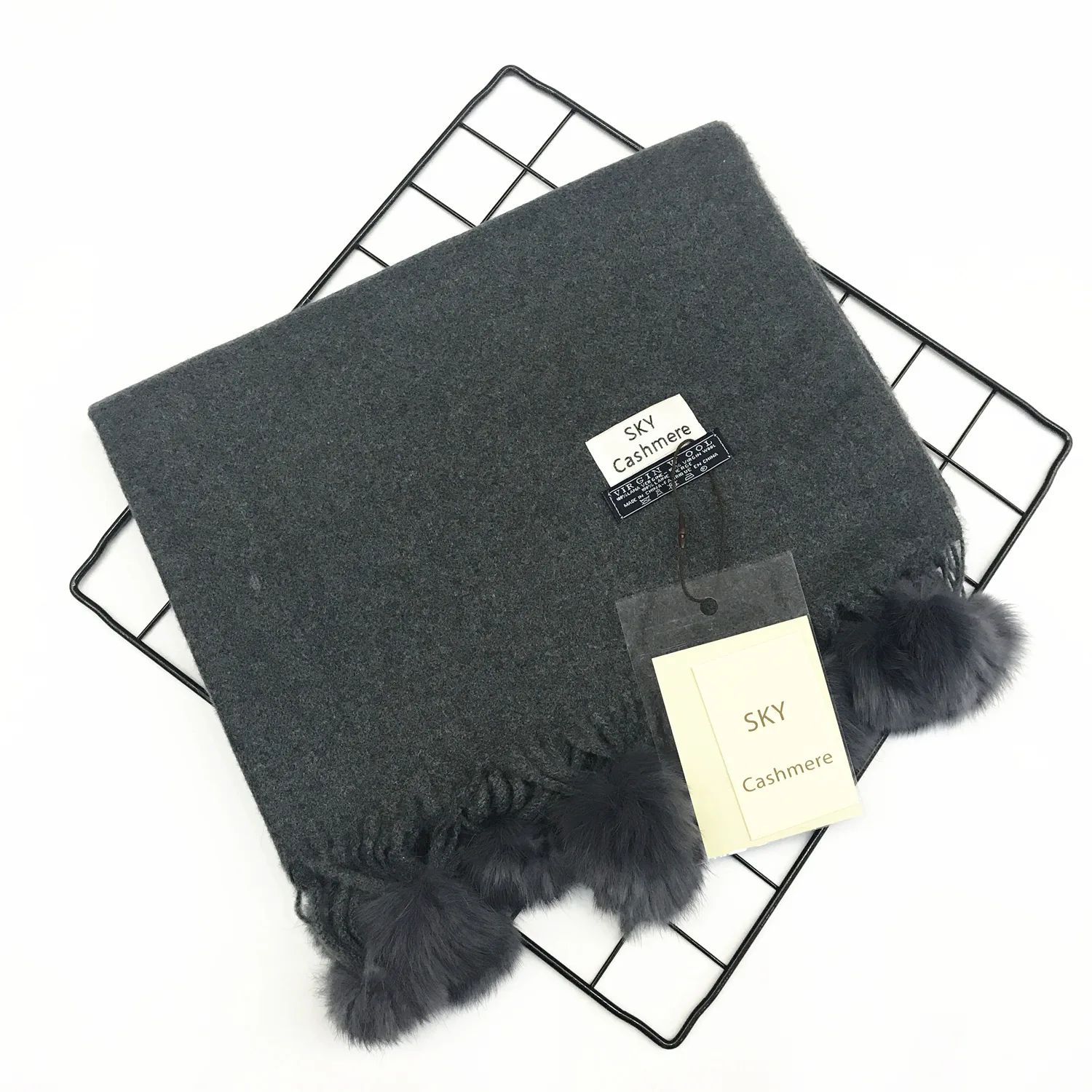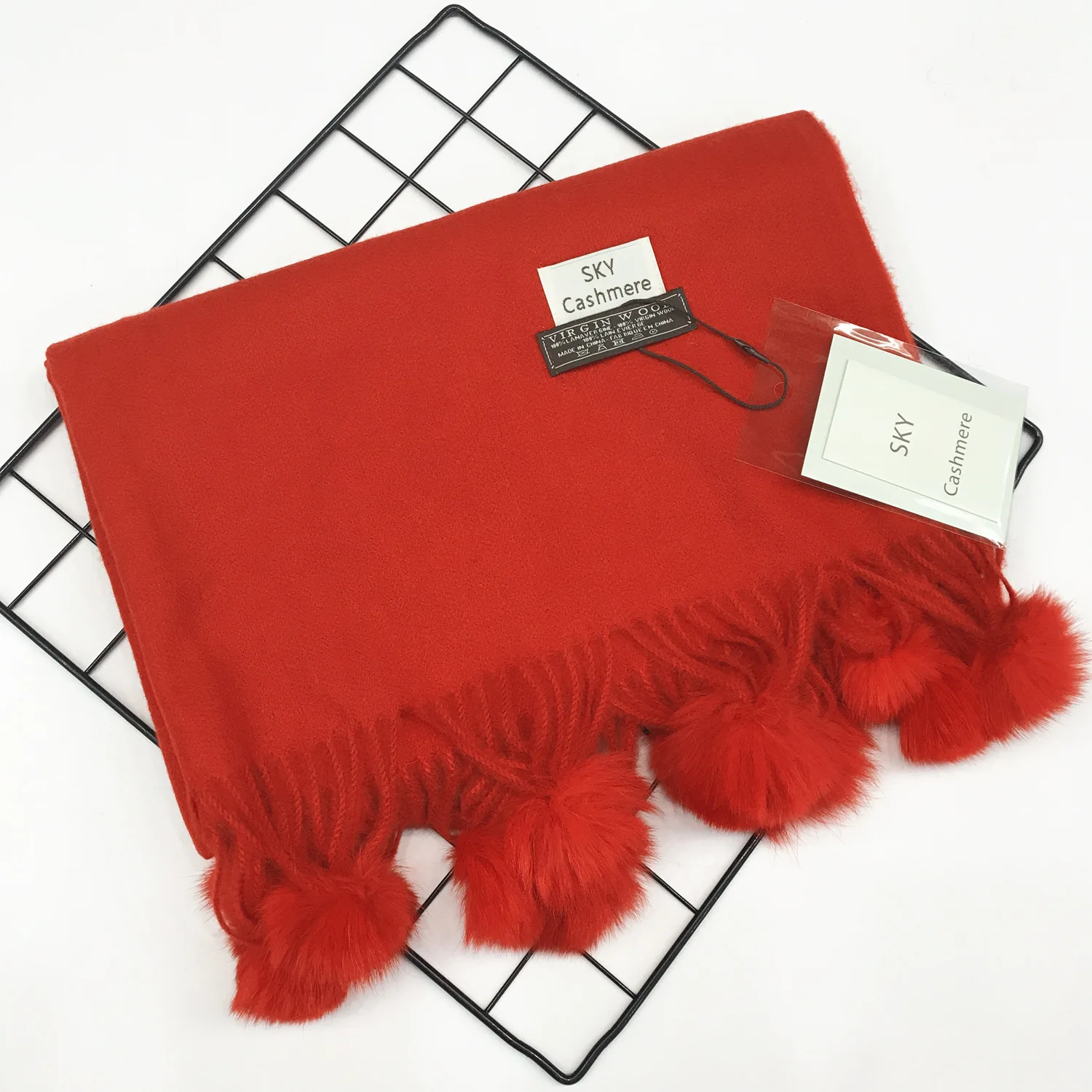 Зимний женский однотонный кашемировый шарф с помпоном из кроличьего меха