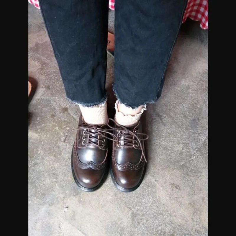 (34-40) повседневные дизайнерские винтажные женские туфли на плоской подошве из спилка; Женские оксфорды ручной работы; Цвет черный, коричневый; B1911-5 Bullock; 2019