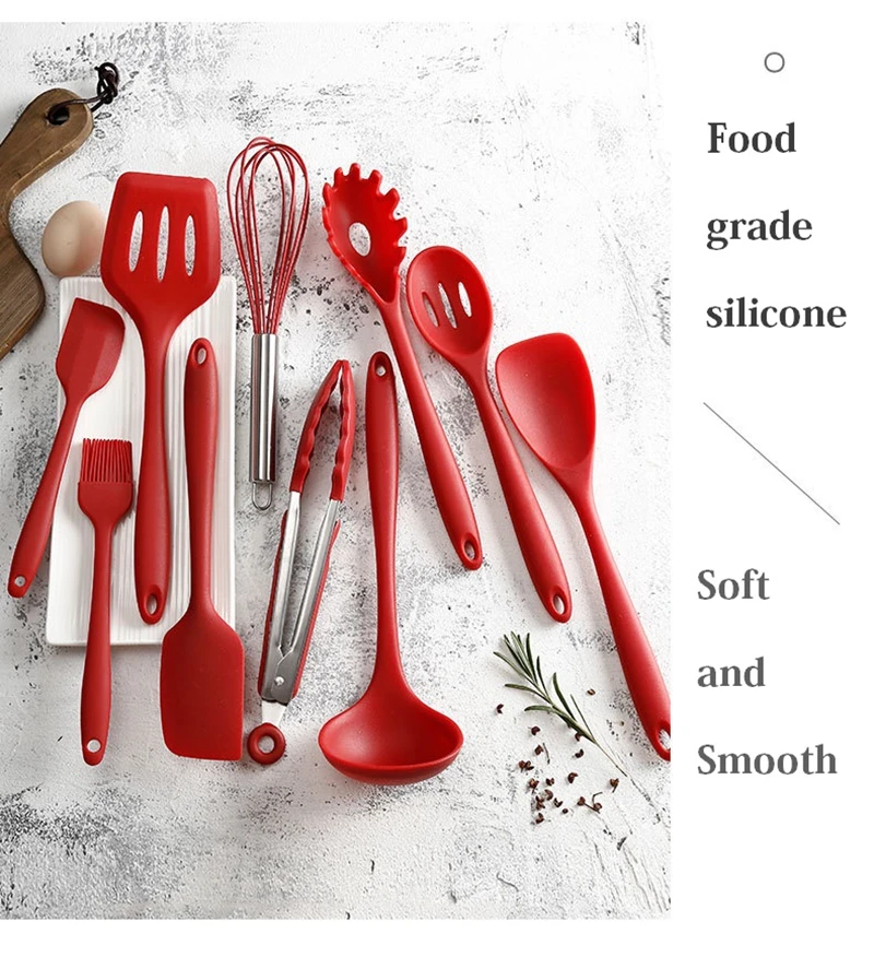 10 шт., набор кухонных инструментов, силиконовая кухонная утварь, ложка, шпатель, масляная щетка, антипригарная лопата, Тернер, паста, сервер, яйцо, шпатель, дуршлаг