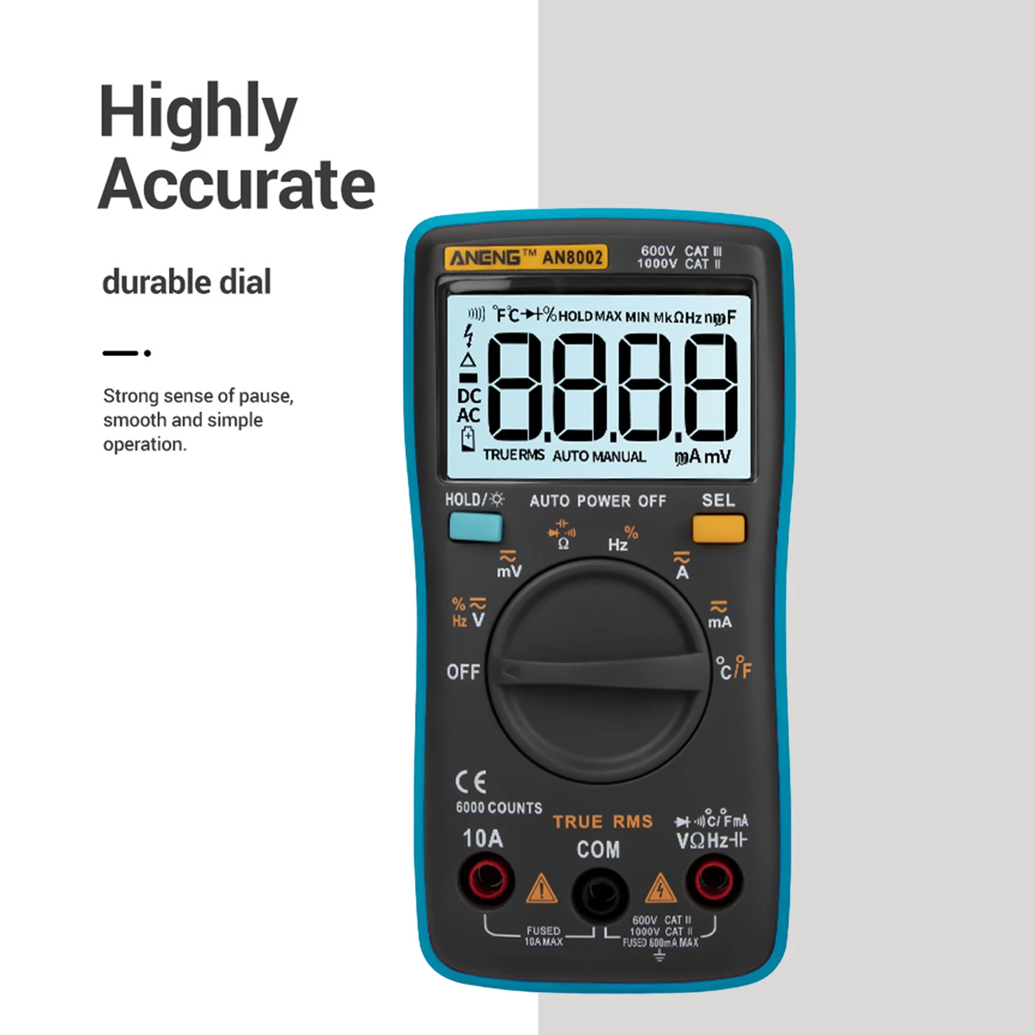 Многофункциональный цифровой мультиметр: для измерения переменного/постоянного тока, напряжения переменного/постоянного тока, сопротивления, непрерывности и диода, емкости, частоты и рабочего цикла и температуры.