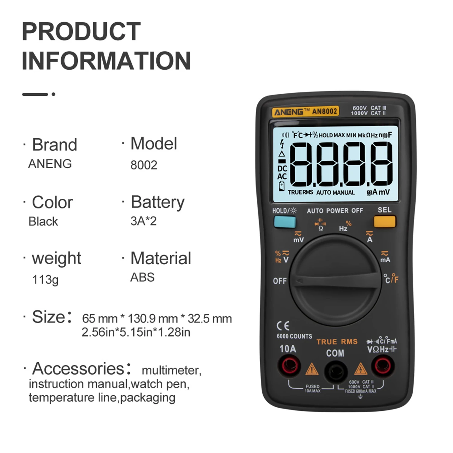 Характеризуется стабильной функцией и высокой надежностью, этот мультиметр является отличным инструментом для лаборатории, фабрики, радио фанатов и семейного использования и т. Д.