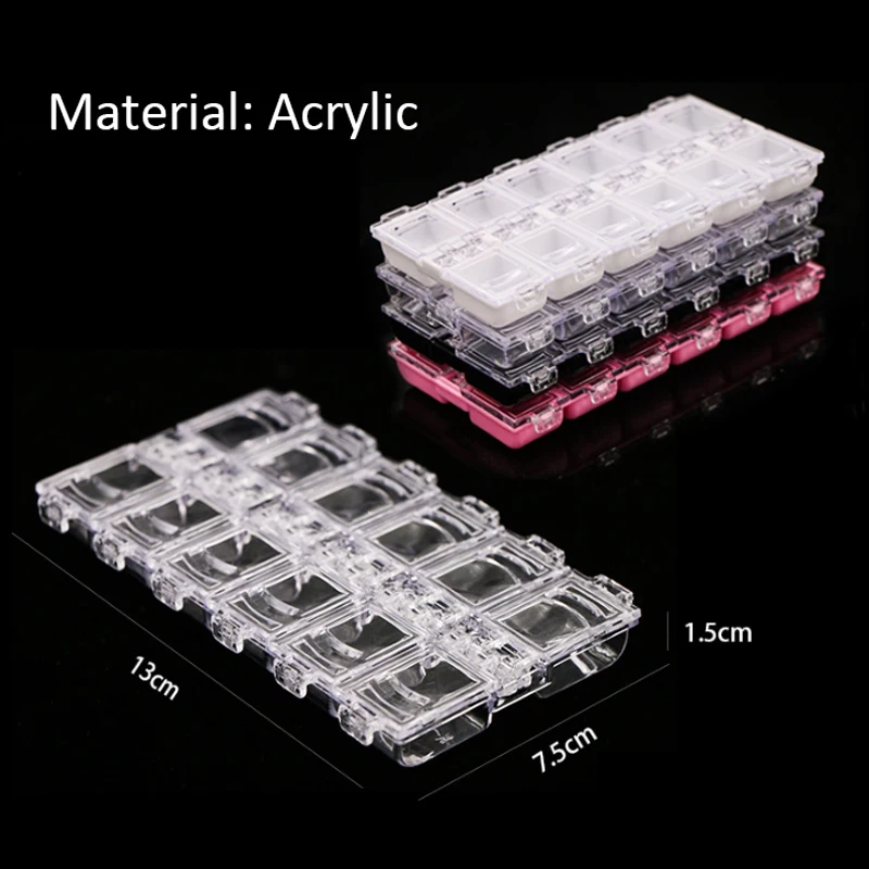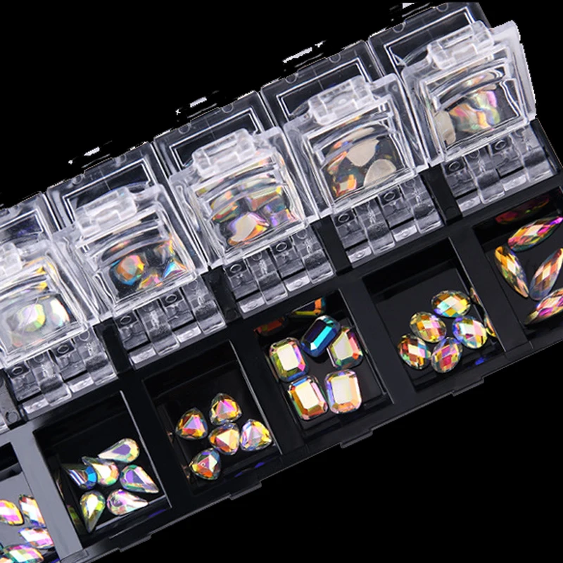 Стразы для дизайна ногтей, 12 коробок, ящик для хранения, 12 отверстий, аксессуары для ювелирных изделий, пластик, PE, 12 сеток, акриловый кристалл, органайзер для самоцветов, контейнер