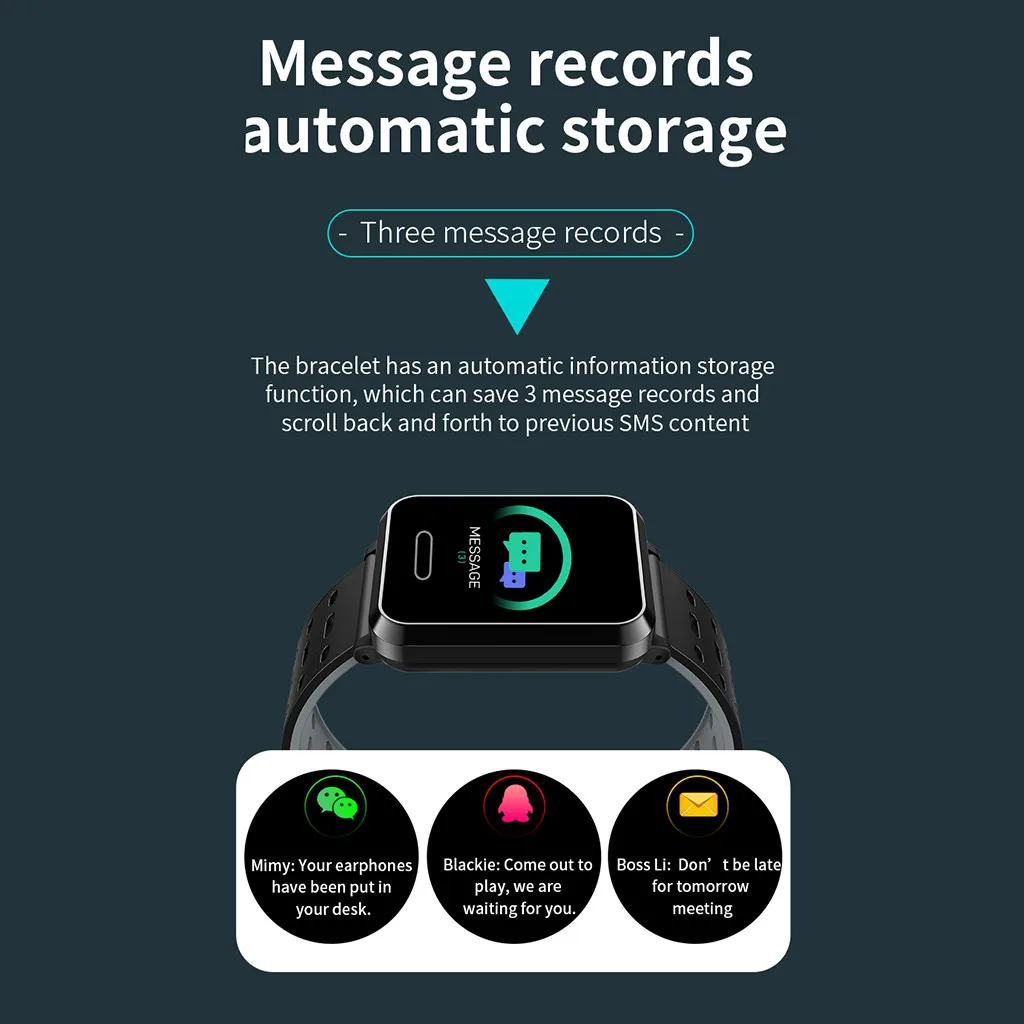 С экраном браслет: (1,3 дюймов IPS цветной экран) Разрешение: 240x240 Системные требования: Android 5,0 и выше, IOS 9,0 или выше, Версия Bluetooth: BLE 4,0 Основной чип управления: NRF52832 Память: 64 м Чип PPG: XH3300 Емкость аккумулятора: 200 мАч Двигатель: встроенный, вибрационное напоминание Водонепроницаемость: IP67 Язык поддержки приложения: китайский (упрощенный, традиционный), японский, английский, французский, немецкий, итальянский, испанский, русский, португальский, корейский, малайзийский Язык поддержки браслета: китайский (упрощенный), английский. Датчик: трехосевой гравитационный датчик Цвет изделия: черный, красный, серый Материал корпуса: стеклянная линза + средняя оправа из цинкового сплава + пластиковый нижний чехол Ремешок: силиконовый двухцветный ремешок Метод зарядки: Магнитная ЗарядкаВнутри коробки: