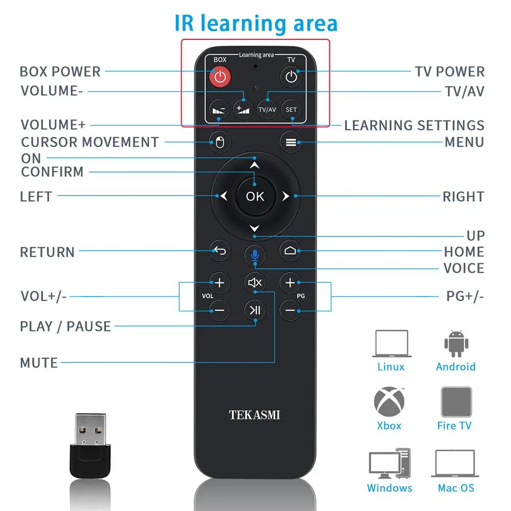 1. Несколько целей: 2,4G инфракрасный обучающий голосовой пульт дистанционного управления может свободно управлять телевизором, который отличается от традиционного, который управляется хостом, что вам нужно сделать, так это перемещать курсор. Пульт ДУ-это не просто пульт дистанционного управления, но и воздушная мышь с чувствительным беспроводным курсором, а левая и правая кнопки пульта делают его настоящей мышью.