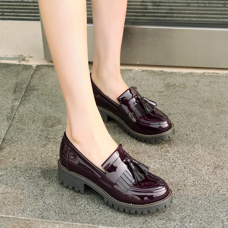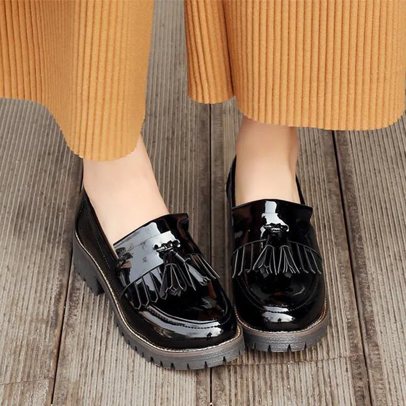 Женские осенние туфли в стиле Дерби на платформе с бантом и кисточками; женские туфли-оксфорды на плоской подошве из лакированной кожи; удобная модная женская обувь без застежки; Размеры 33-43