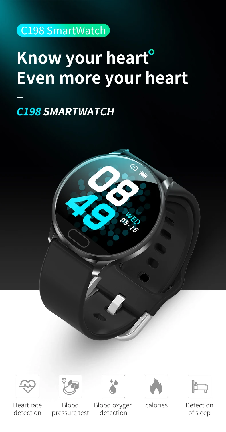 4. Монитор сердечного ритма: часы могут анализировать кровоток под кожей и неправильный пульс в режиме реального времени зеленым оптическим датчиком, помогая вам избежать чрезмерного пульса, вызванного неправильным упражнением.