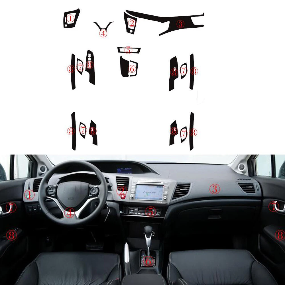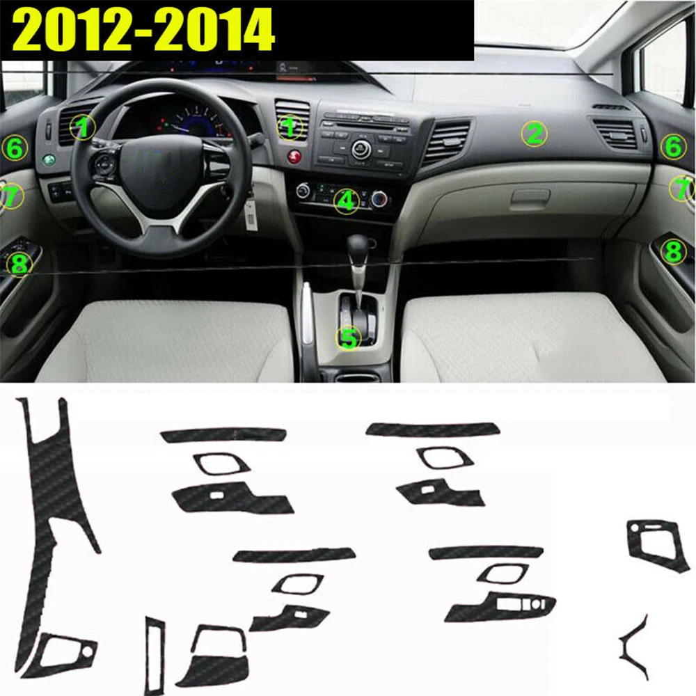 Деколи для салона автомобиля из углеродного волокна, обшивка для 2012 2013 2014 Honda Civic