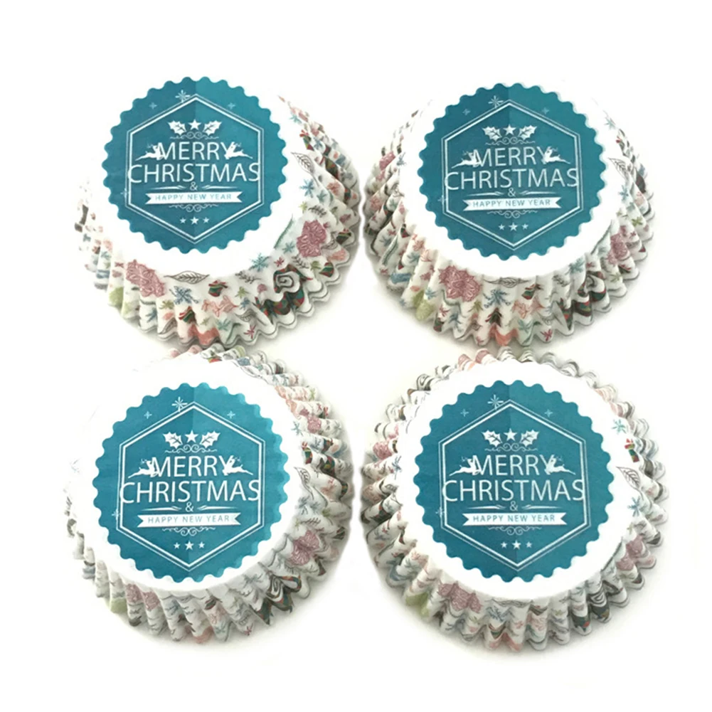 100 шт Рождественский колпачок Снеговик Печать Кекс вкладыши обертки торт выпечки чашки лоток
