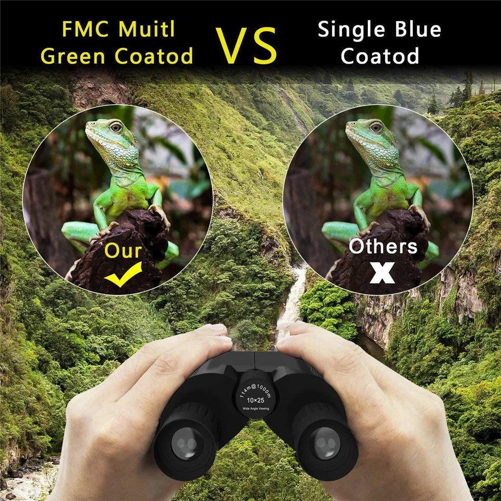 Этот компактный и легкий бинокулярный 10x увеличение, которое может обеспечить Яркое видение, идеально подходит для охоты на открытом воздухе, наблюдения за птицами, пеших прогулок, занятий спортом Мероприятий и других мероприятий.