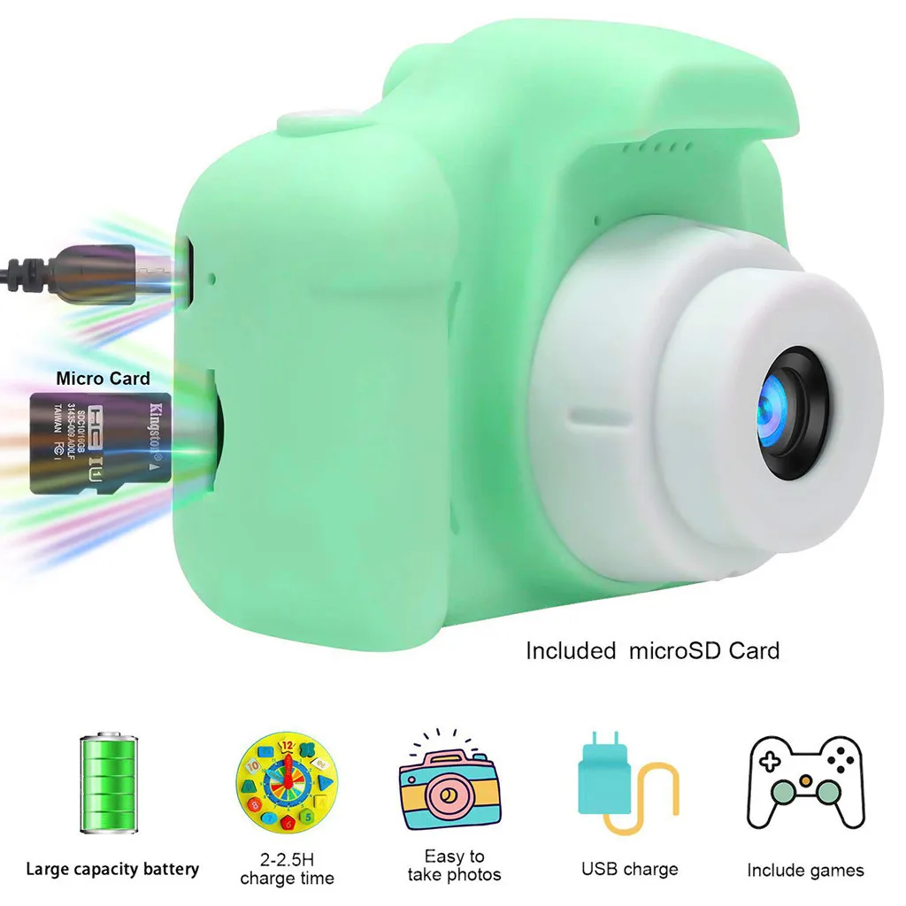 Отличный подарок для детей: Детская цифровая камера очень милая, маленькая и весит светильник, идеальный размер для маленьких рук. Легко носить с собой и управлять, это лучший подарок на день рождения/Рождество/праздник для детей.Художественные эффекты: Детская Цифровая камера поставляется с забавными фотоэффектами, рамками и фильтрами, чтобы ваши дети были вдали от смартфона и любили истинную природу. Развивайте хобби детей, сделайте первый шаг гениального фотографа.Высокое качество: Изготовлен из высококачественных и экологически чистых материалов, нетоксичный привлекательный дизайн, прочный, Выдерживает падения. Пусть ваши дети записывают свои незабываемые моменты со звуком.Компактный размер и нежный подарок для детей: и компактный маленький размер 93x42x61 мм, делает камеру удобной для переноски везде, упаковка включает прочный ремешок для портативности, дизайн для детей, чтобы повесить мини-камеру на шею, просто запечатлейте сцену или животных на природе с семьей, испытайте удовольствие от природы.Параметр
