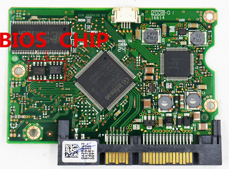 Большинство плат HDD имеют уникальную BIOS(ROM или NVRAM чип), которая включает уникальные данные для доступа к области системы HDD. Если информация о BIOS не совместима с вашим HDD, нет возможности считывать данные жесткого диска. Из-за этого мы должны использовать оригинальную печатную плату biosкогда мы меняем PCB. Замена чипа BIOS является обязательным.