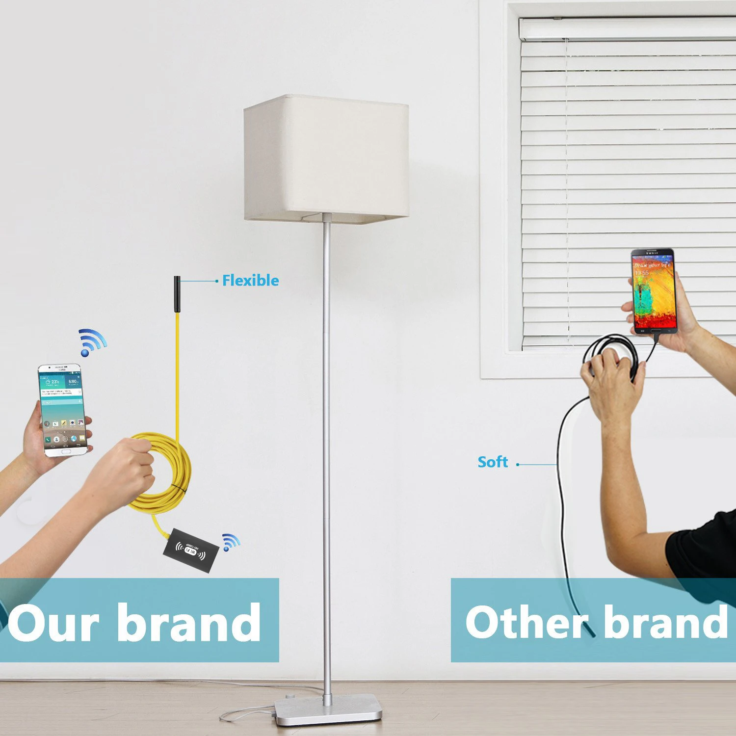 Совместимость с Android IOS Windows-в отличие от традиционного проводного эндоскопа, Этот новейший бороскоп Wi-Fi включает беспроводной передатчик, что делает эндоскоп поддержкой смартфонов Android, iPhone IOS системы и Windows.