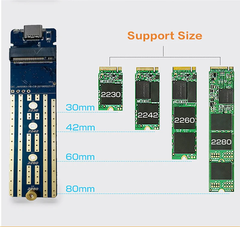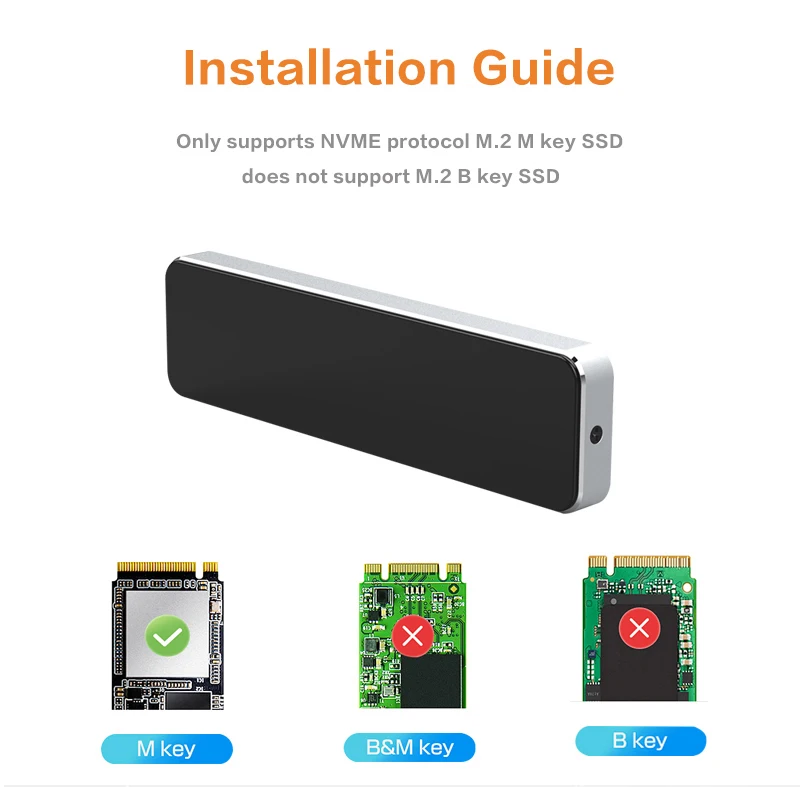 ** M.2 SSD не входит в комплект. ** Поддерживает PCI-E based M key M.2 NVME SSD до 2 ТБ; SATA-based B Key & (B + M) Key M.2 SSD или PCIe AHCI SSD не поддерживаются! Если вам нужен SSD корпус на базе SATA, пожалуйста, приобретите другую модель в нашем магазине. Спасибо ~