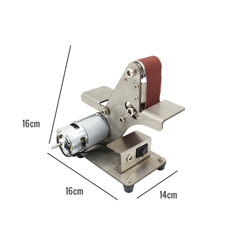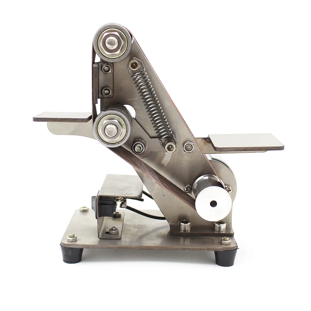 Это многофункциональный ленточный шлифовальный станок, мини портативный, низкий уровень шума, может использоваться для высокоскоростного стального сверла грубого шлифования, кромки лезвия, тонкого шлифования вольфрамовой стали токарного инструмента, полировки корень дерева Бодхи и т. Д., простой в установке и эксплуатации, хороший домашний инструмент DIY.