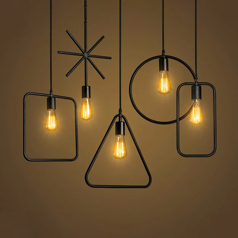 Винтажный светодиодный подвесной светильник из кованого железа E27 ретро геометрический треугольный/круглый канделябр кухня ресторан кафе бар подвесные светильники