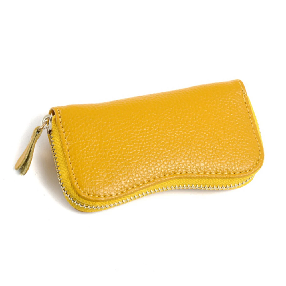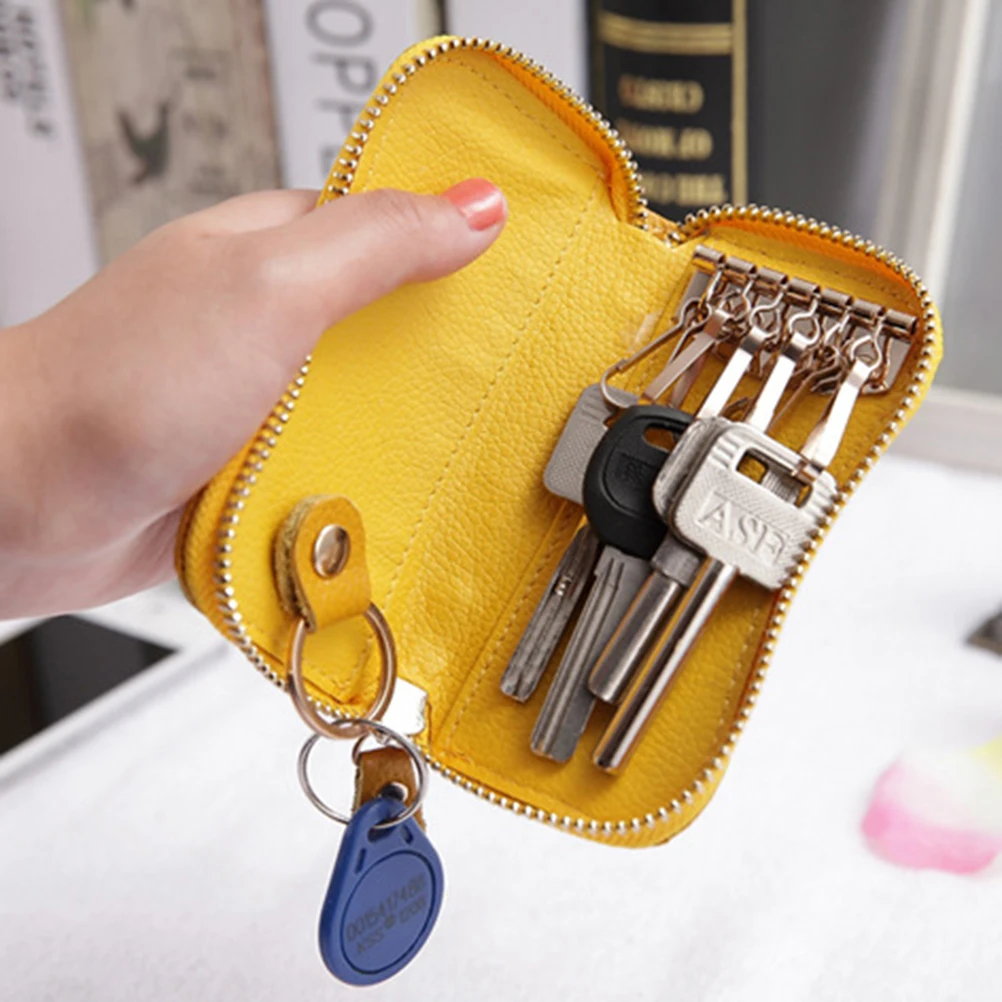 Чехол из натуральной кожи с держателем для ключей для автомобиля, кошелек на молнии с 6 кольцами, чехол для карт для мужчин и женщин (ярко-желтый)