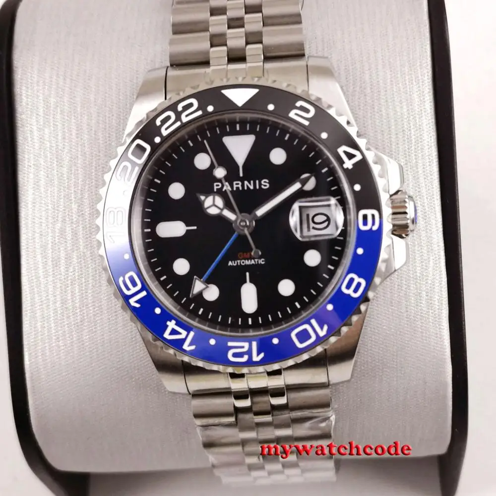 Колебательная система: Автоматический (самонамоточный) механизм Циферблат:Черный циферблат Чехол диаметр: 40 мм ЧехолТолщина:15 мм ЧехолМатериал: Твердый чехол из нержавеющей стали 316L с черным и синим керамическим ободком 30 M Водонепроницаемость