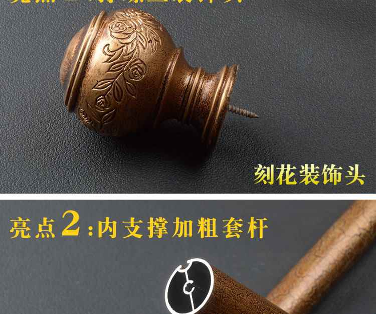 Имитация древесины Римский стержень античный ретро Европейский штора 32 мм Диаметр одиночный и двойной алюминиевый сплав Римский шест