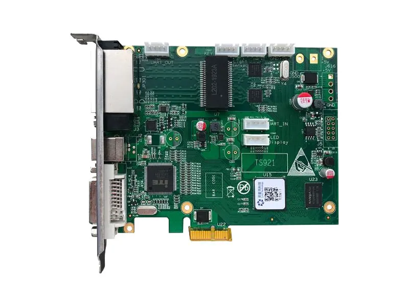 TS921 является linsn полноцветный светодиодный отправка карты, поддержка одного цвета, dula цвет, полноцветный дисплей. Поддержка функции чтения файлов для получения карты конфигурации; Поддержка функции отображения подключенного радио; Поддержка 12 бит/10 бит/8 бит видео вход; Поддержка 16-битного серого дисплея; 1 канал аудиовход; Использование интерфейса PCI-E 1X, Совместимость с компьютером лучше;