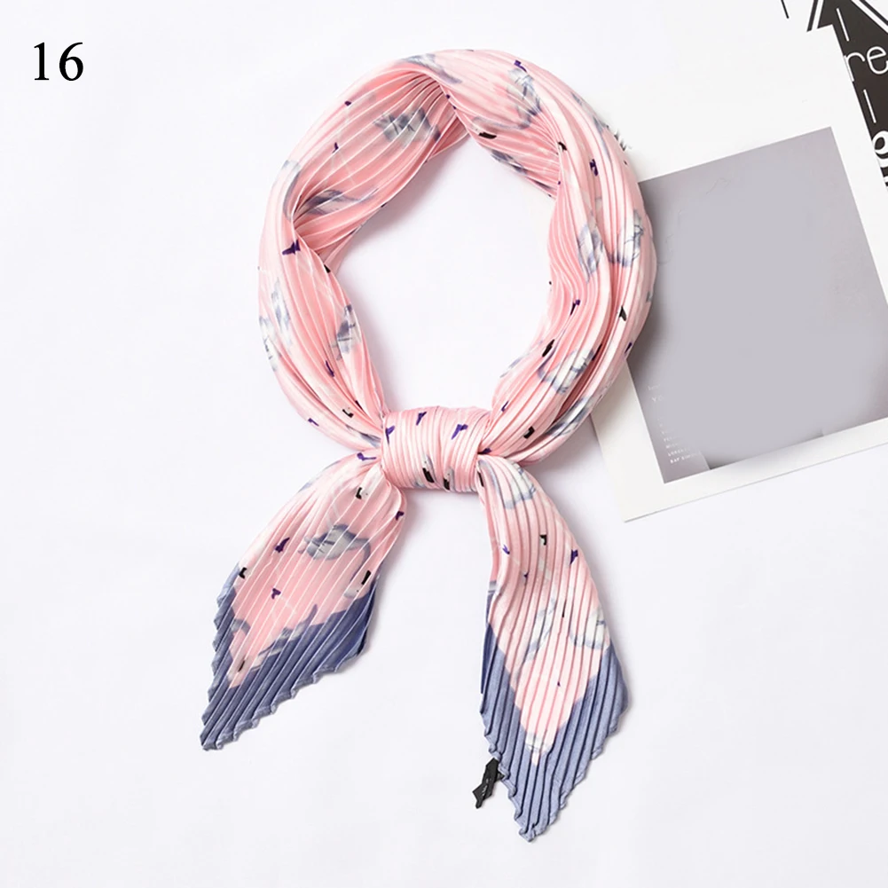 1PC Square Crinkle Small Silk Scarf Bandana Neckwear Pleated Print Handkerchief