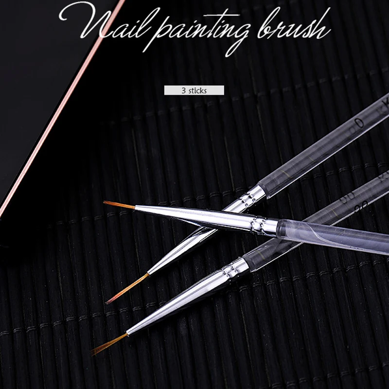 3 шт. кисти для дизайна ногтей тонкая ручка-лайнер для рисования колинский Кристалл акриловая живопись в полоску цветок 2 стороны маникюрные инструменты для ногтей набор
