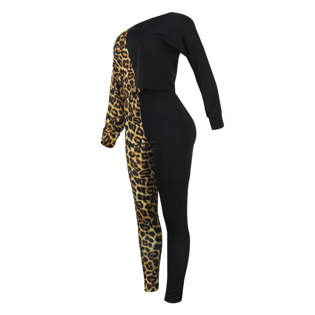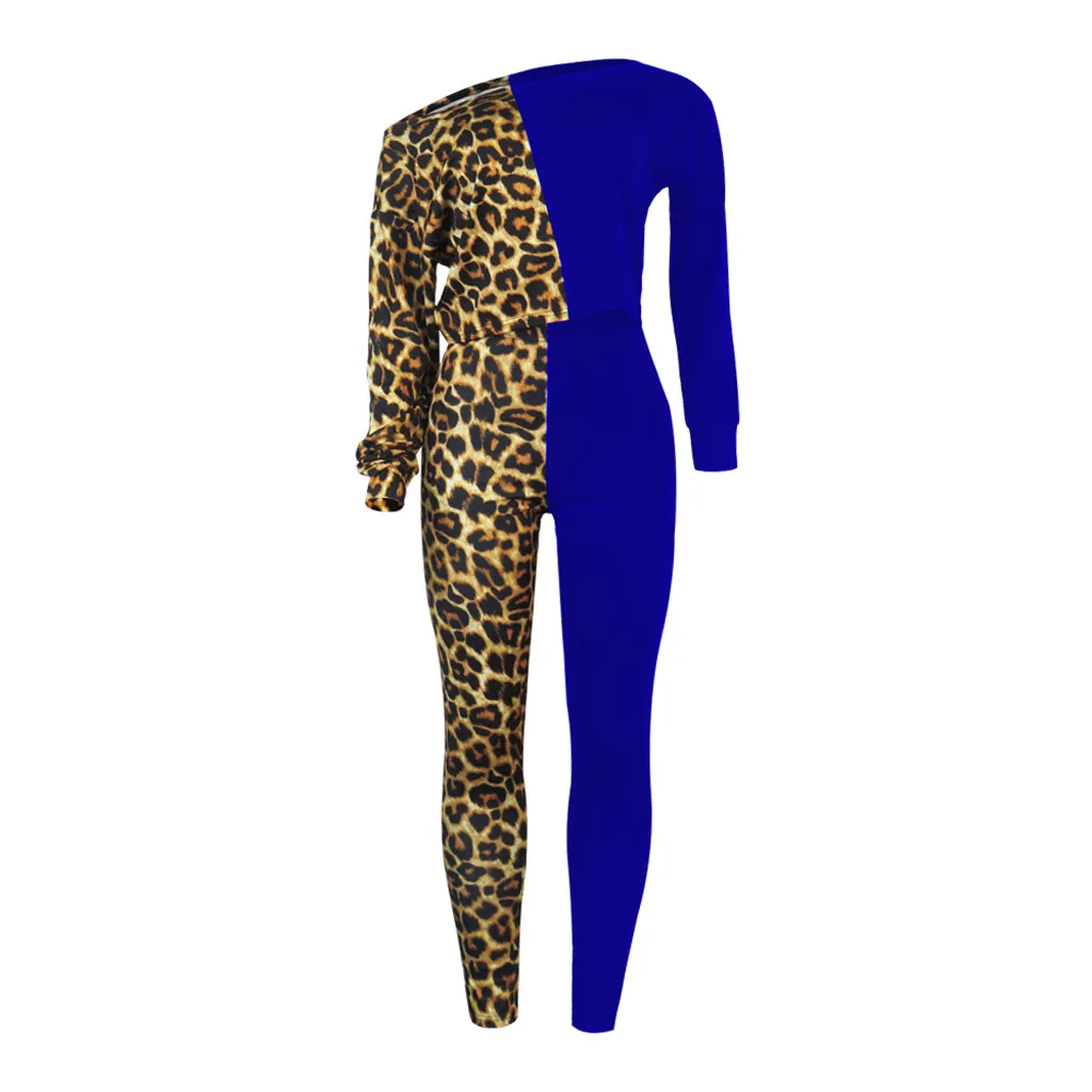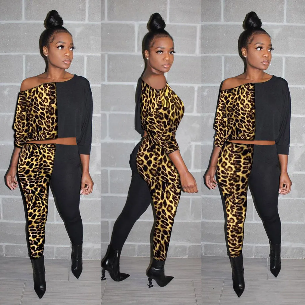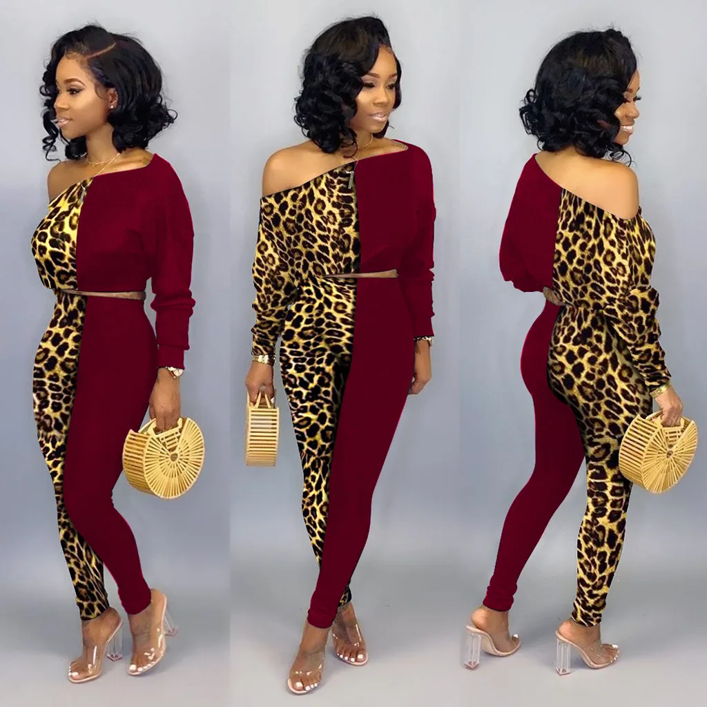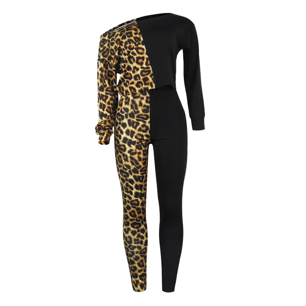 Женская Сексуальная Блузка с длинным рукавом и леопардовым принтом + длинные штаны