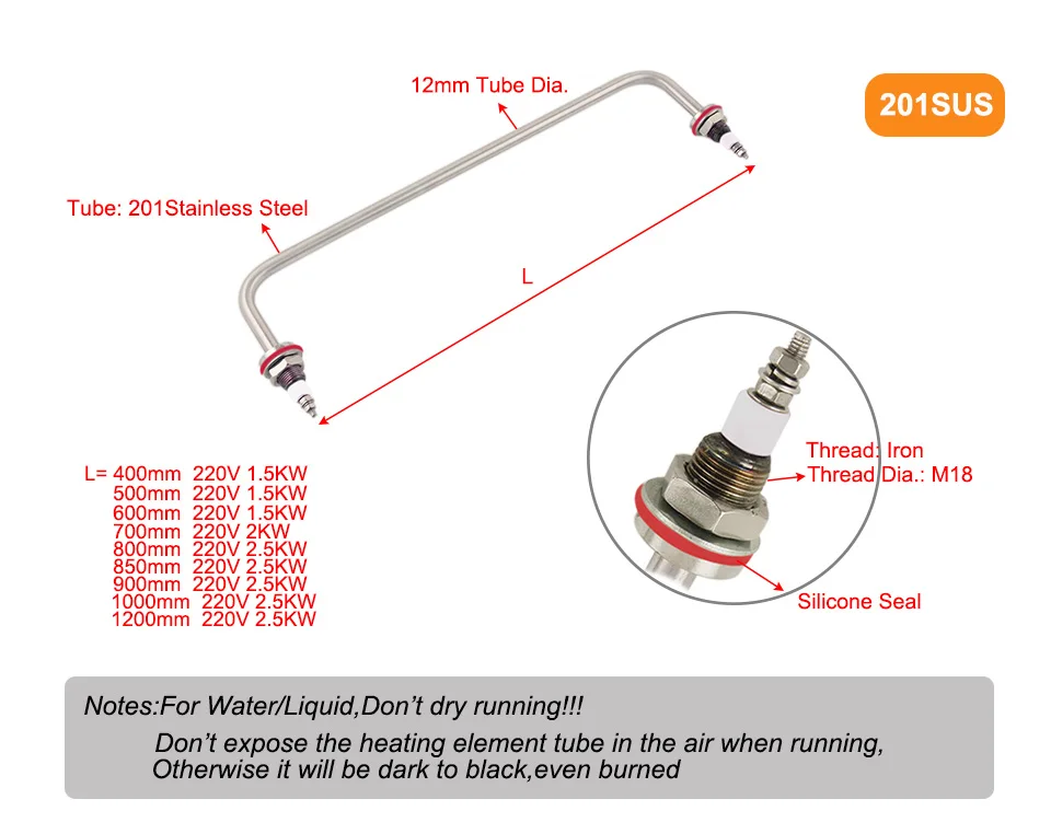 U-Тип нагревательный элемент M18 нить 220V Нержавеющая сталь U Форма электрическая нагревательная трубка 1,5/2/2.5KW для автомобиля шведского стола Кухонные принадлежности