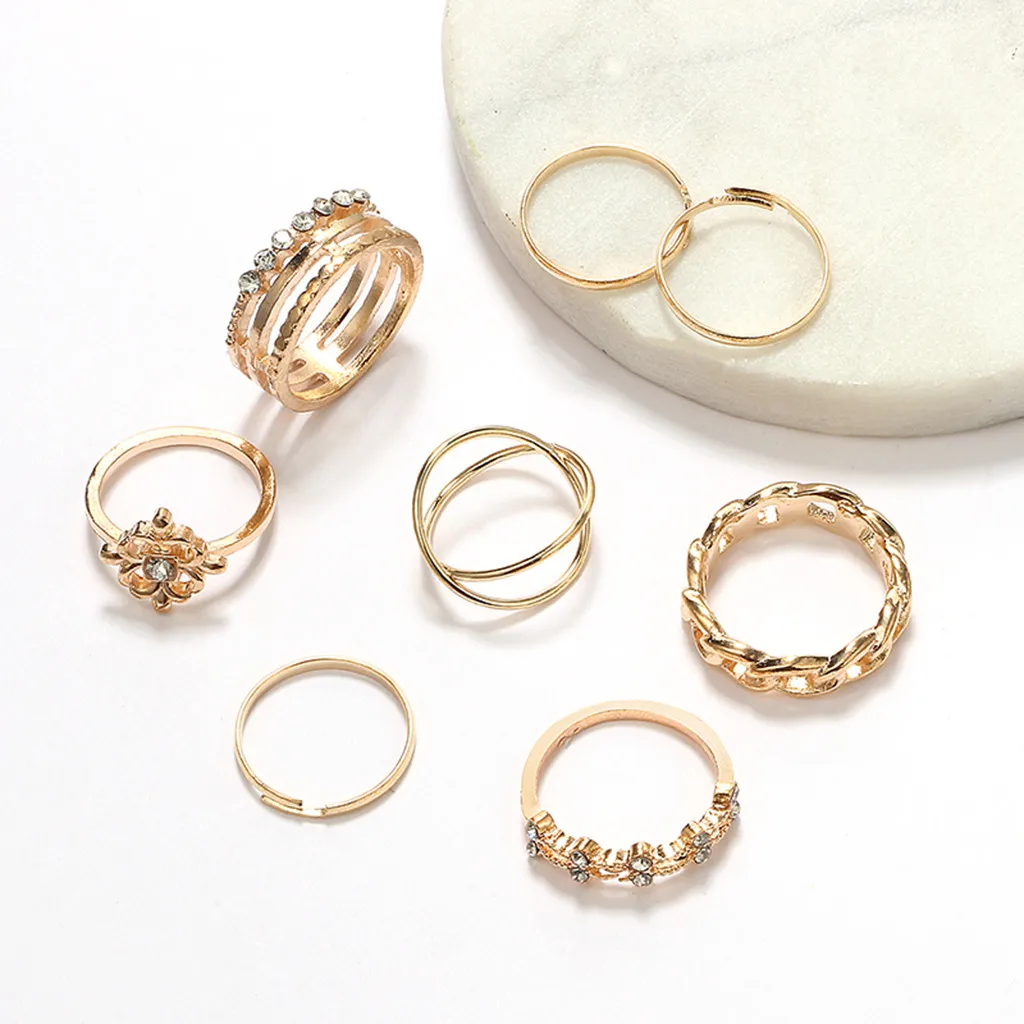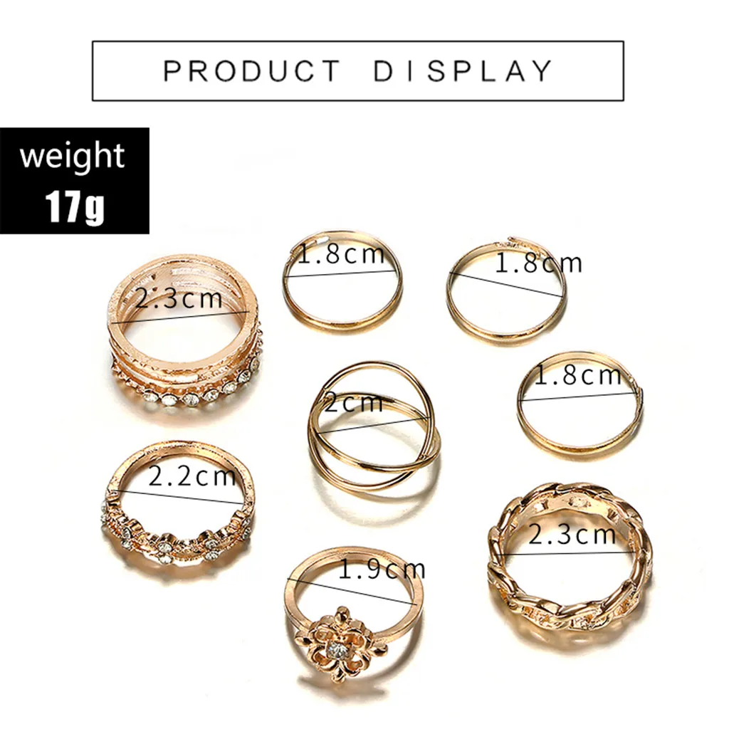 Женский модный ажурный набор колец из сплава с двойным крестом, набор из 8 колец на палец, ювелирные изделия, оптовая продажа, набор колец, подарок для женщин и девушек #10