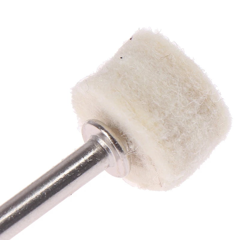 Размер: 13*7 мм/0,51*0,28 дюйма Диаметр хвостовика: 3 мм/0,12 дюйма Материал: шерсть + металл Цвет: бежевая чистая шерсть, используется в сочетании с полировальной пастой для полировки после обработки воском.