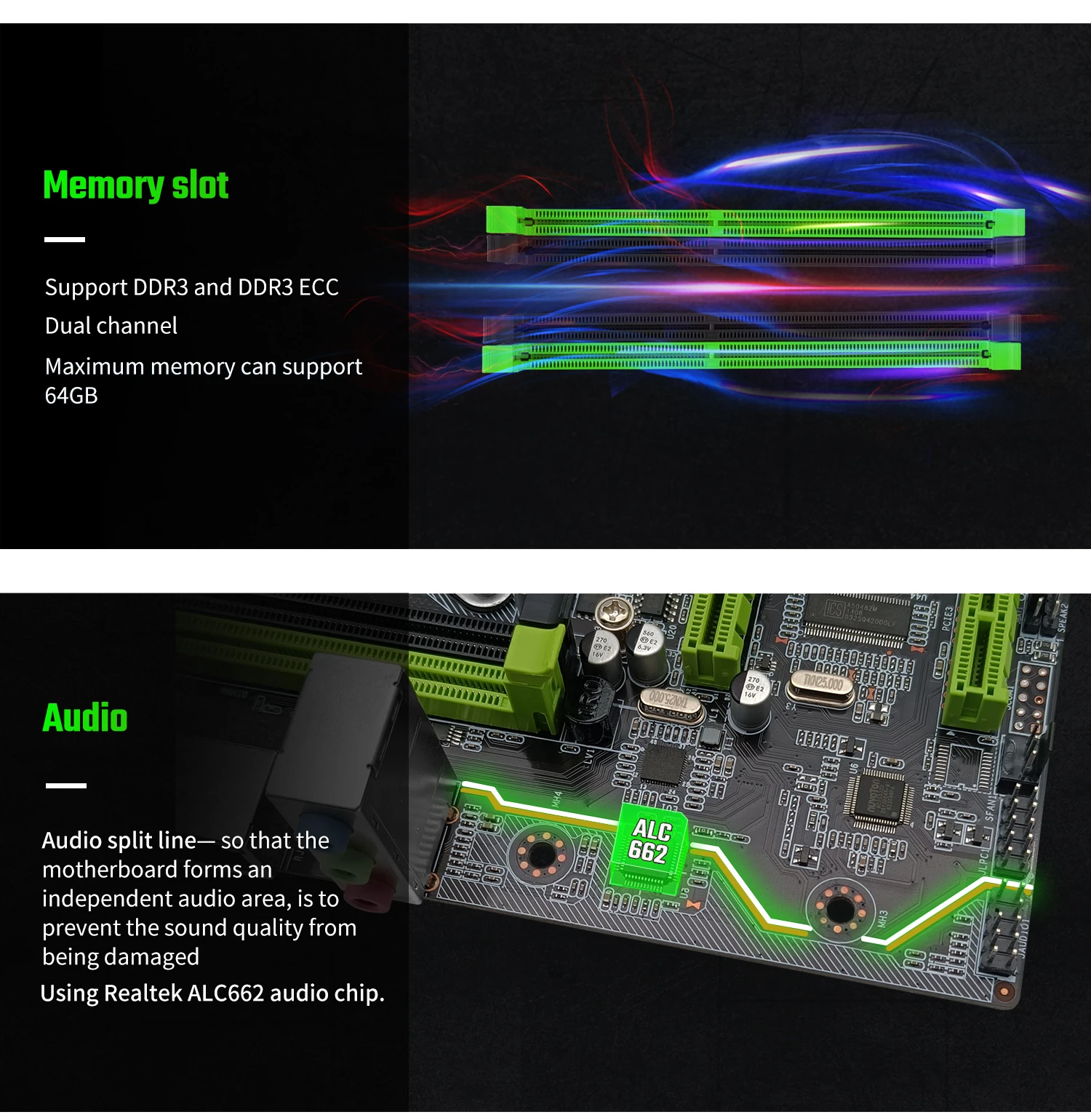 Memory type supported: 800/1280/1333/1600/1866mhz(The server ram can't work with the desktop ram, it has the compability problem.)