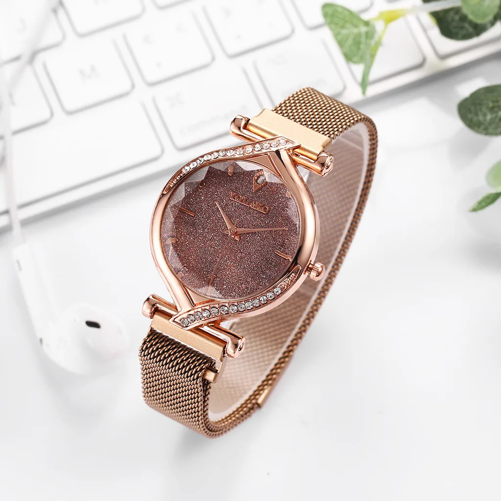 Женские кварцевые часы из нержавеющей стали с ремешком, женские зеркальные часы с магнитной пряжкой, reloj mujer bayan kol saati