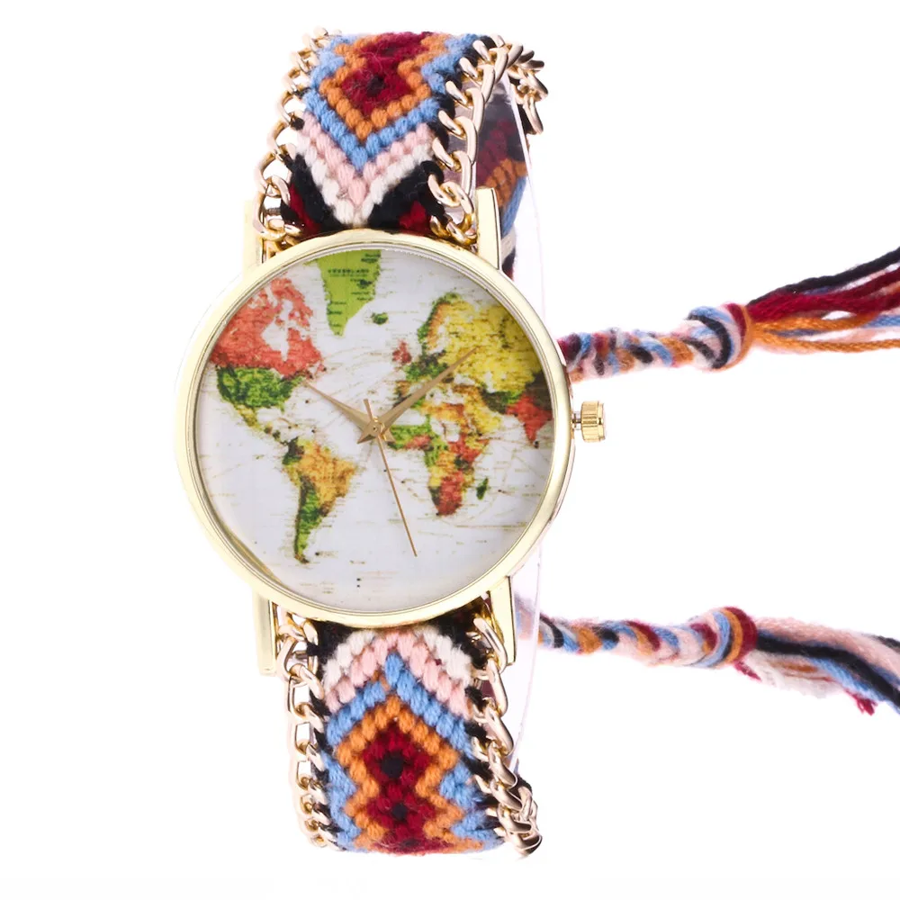 Женские вязанные плетеные веревочные часы, браслет, Простые Модные кварцевые часы с картой и циферблатом, женские наручные часы, часы для влюбленных, reloj mujer