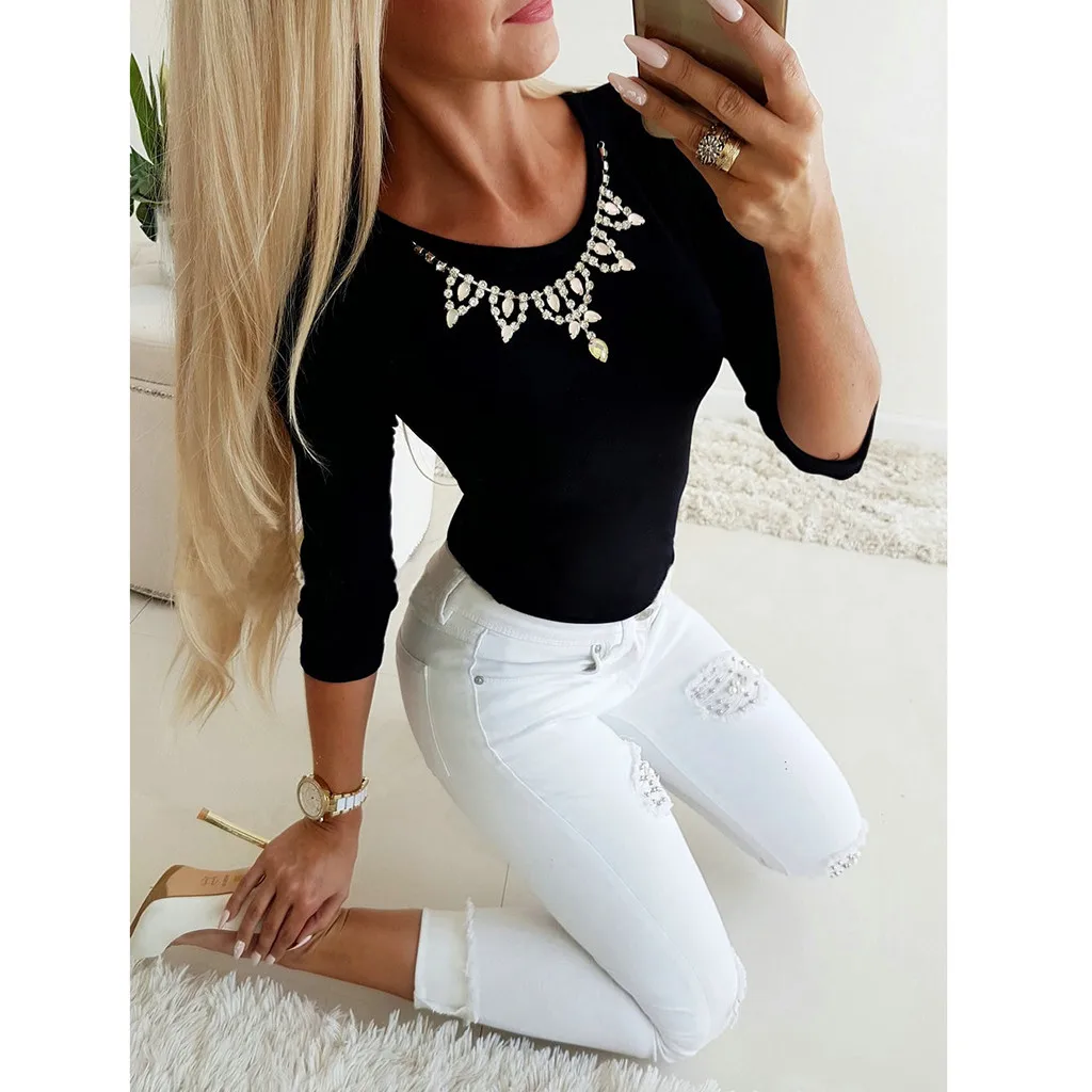 Женское повседневное длинное с круглым вырезом Топы с рукавами; блузка; футболка