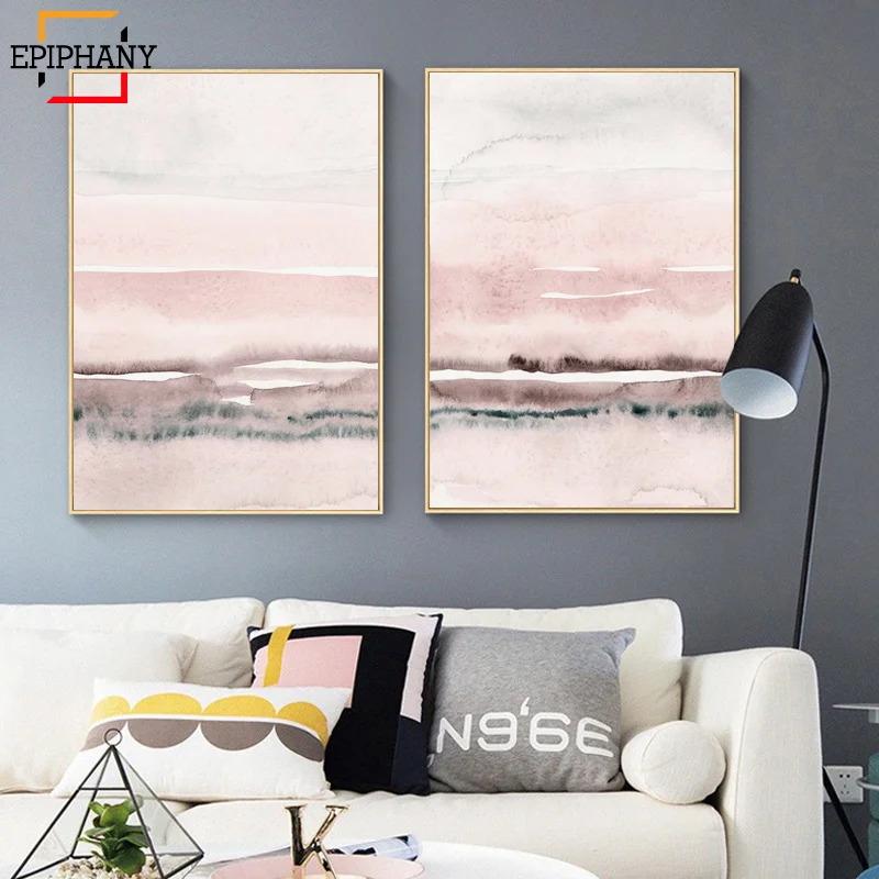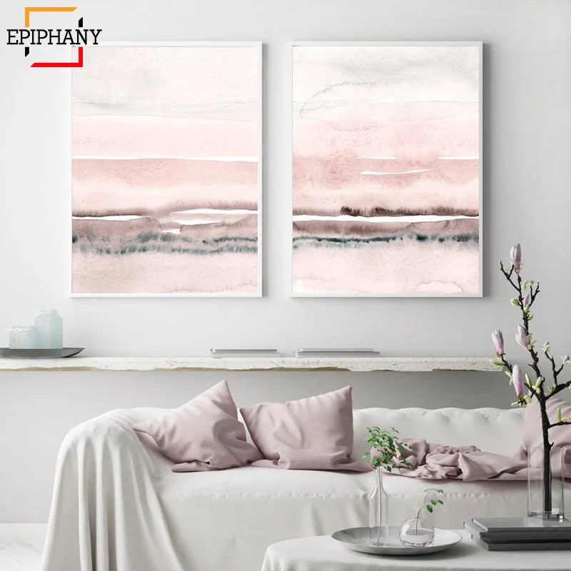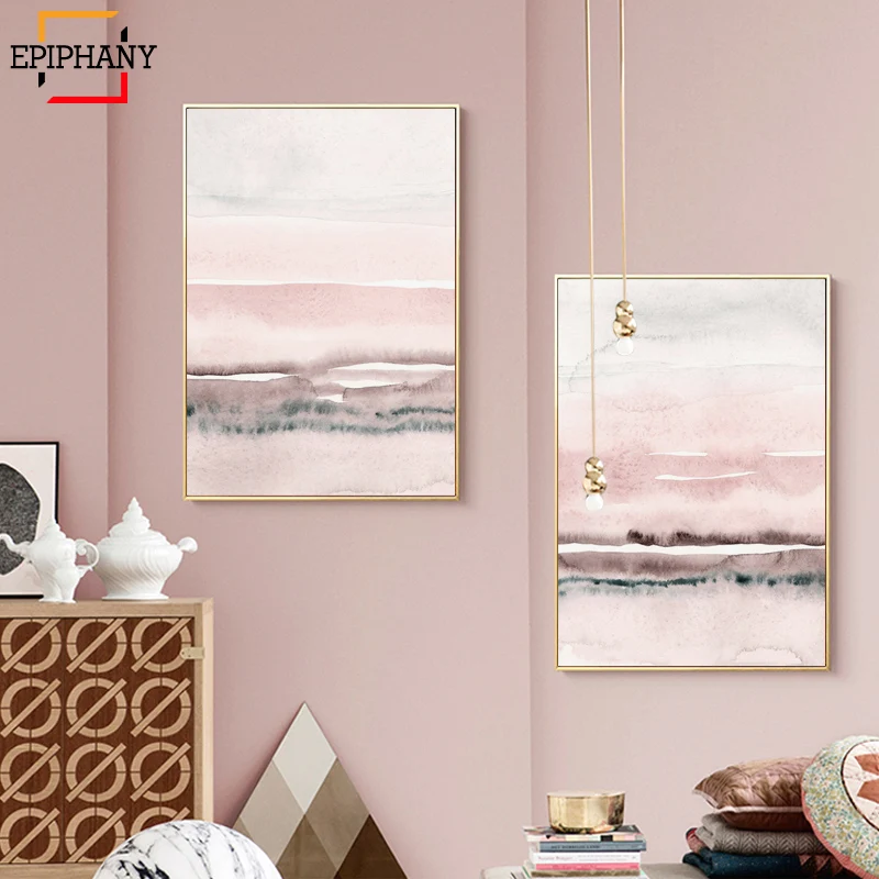 Розовая и серая картина абстрактная Акварельная печать скандинавский настенный художественный холст Картина Современный минималистичный плакат для декора гостиной