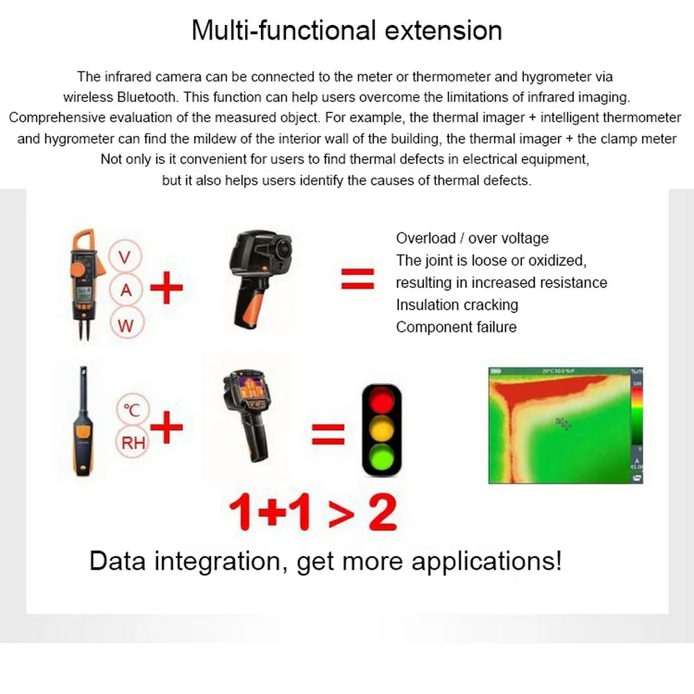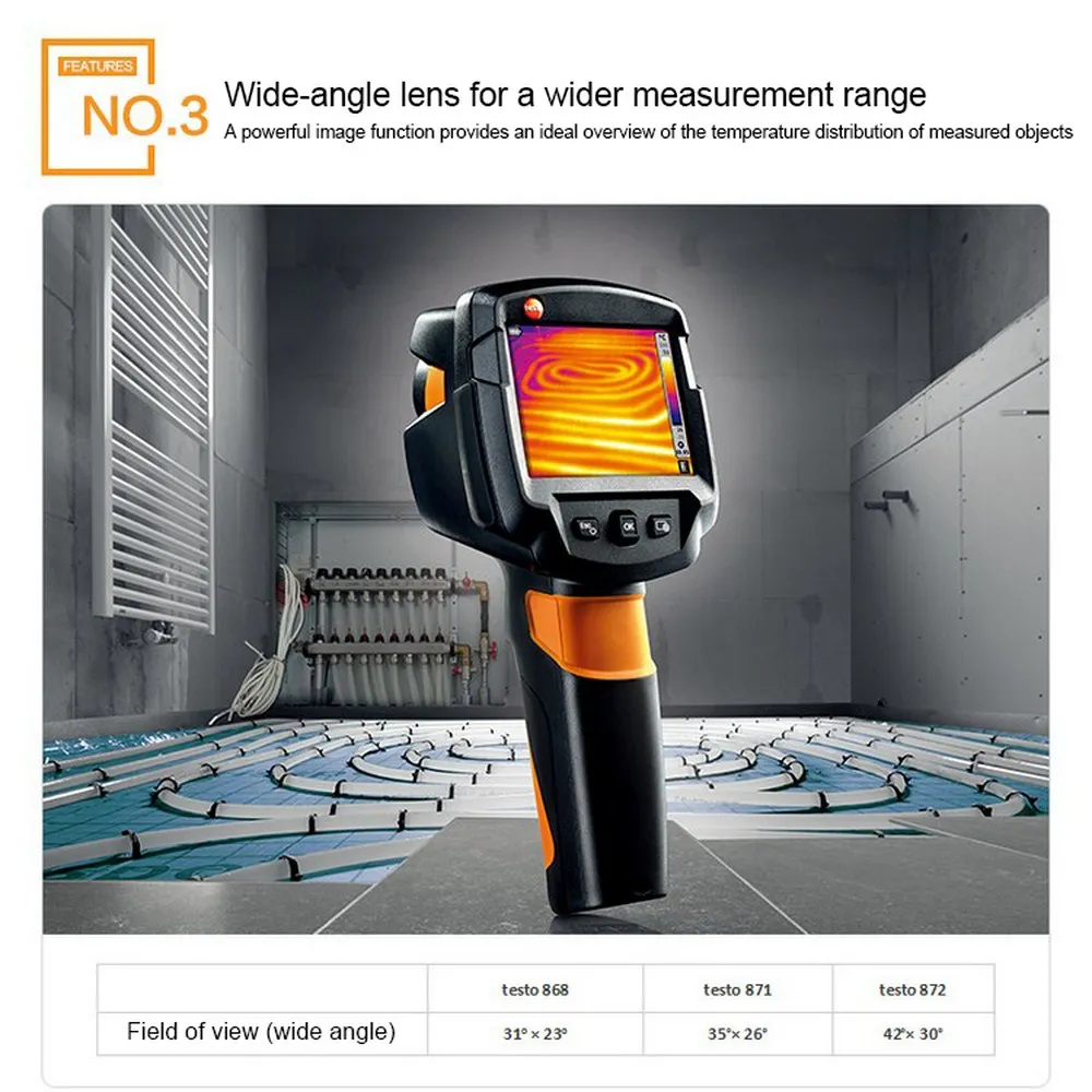 Тепловизор Testo 868 делает работу более быстрой и легкой без вышеуказанной профессиональной технологии тепловизирования, так как вы можете генерировать безошибочные и объективно сопоставимые инфракрасные изображения с помощью своих удобных функций.