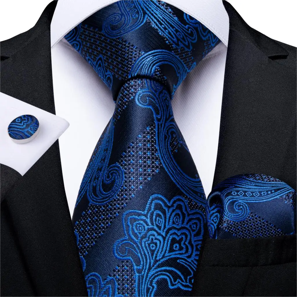 Мужской галстук темно-синий цветочный однотонный качественный свадебный галстук для мужчин Hanky запонки шелковый галстук набор DiBanGu новый дизайн бизнес MJ-7312