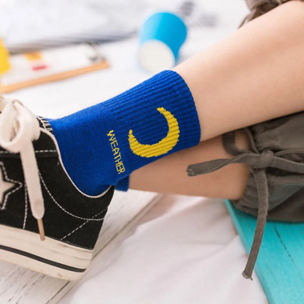 Тип изделия: Носок Тип носка: Повседневный Материал: хлопок Тип узора: погода Пол: Для Женщин Размер: один размер Длина: 23-27 см комплектация: 1 пара носков Примечание: допускается погрешность в 1-3 см.