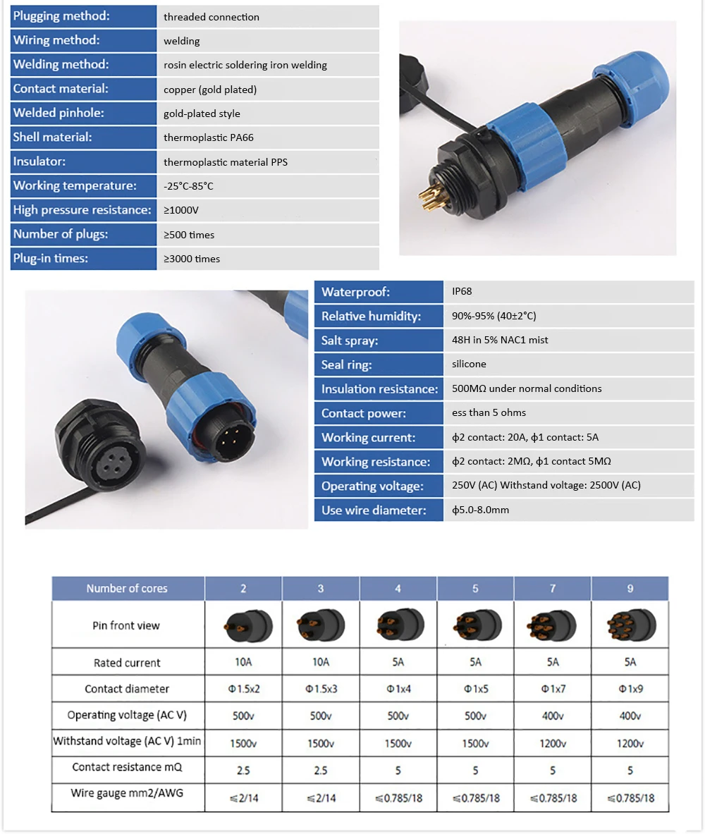 1 * SP17 IP68 Водонепроницаемые разъемы